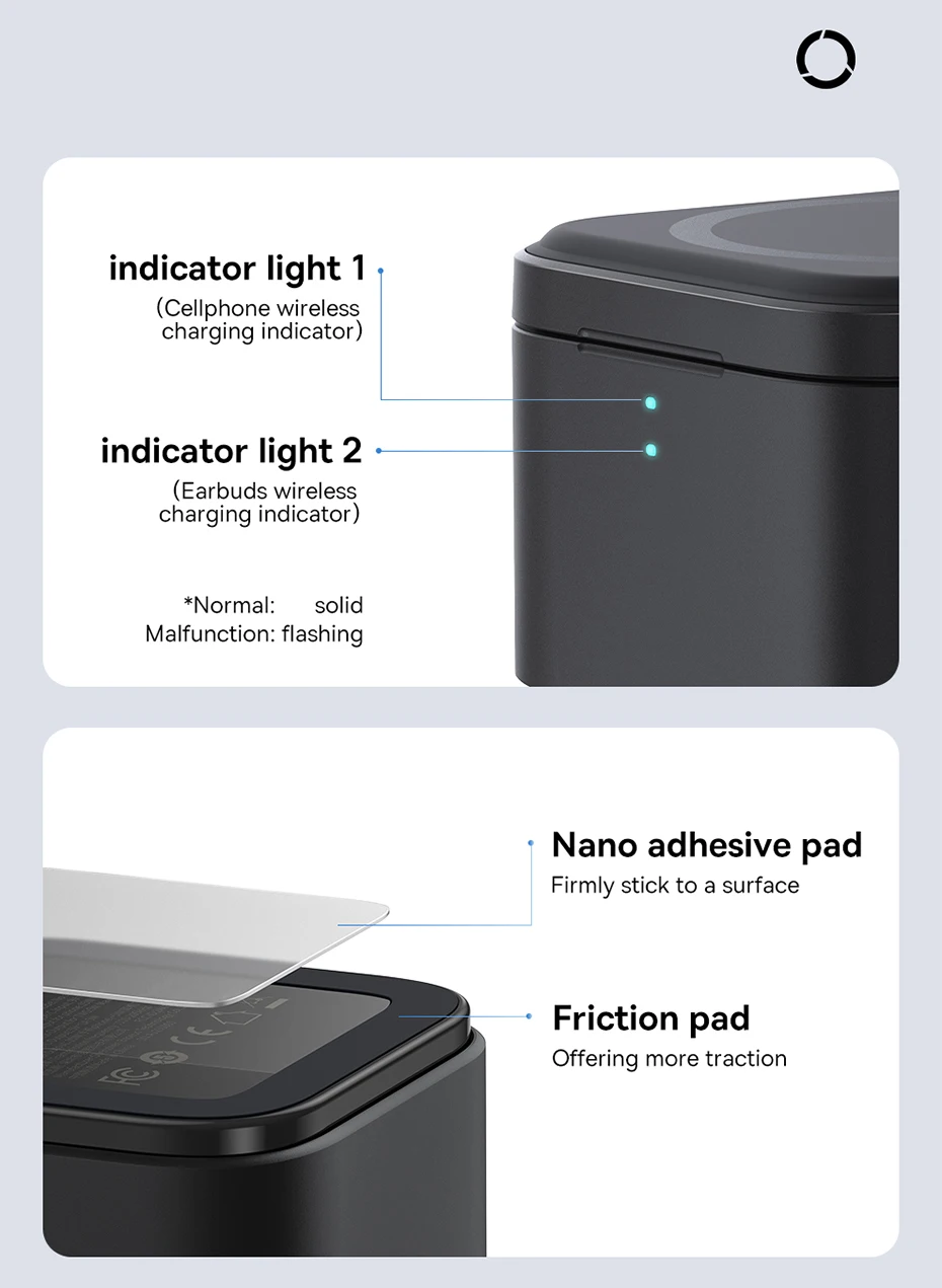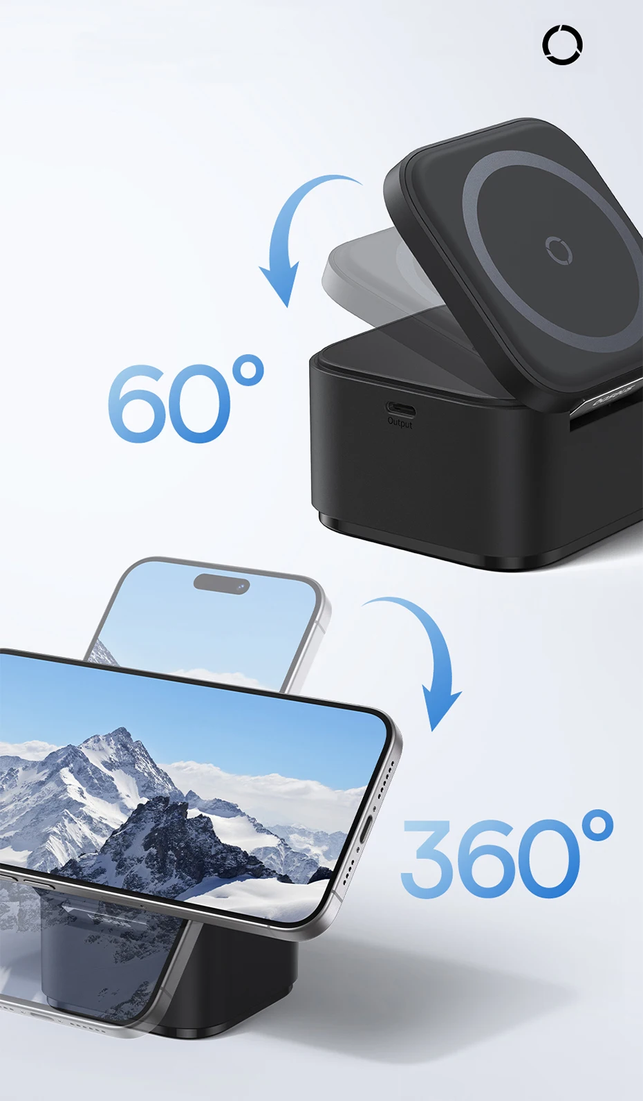 El panel de carga inalámbrica tiene un ajuste vertical de 0-60 °, y el teléfono móvil tiene un ajuste de rotación de 360 °.