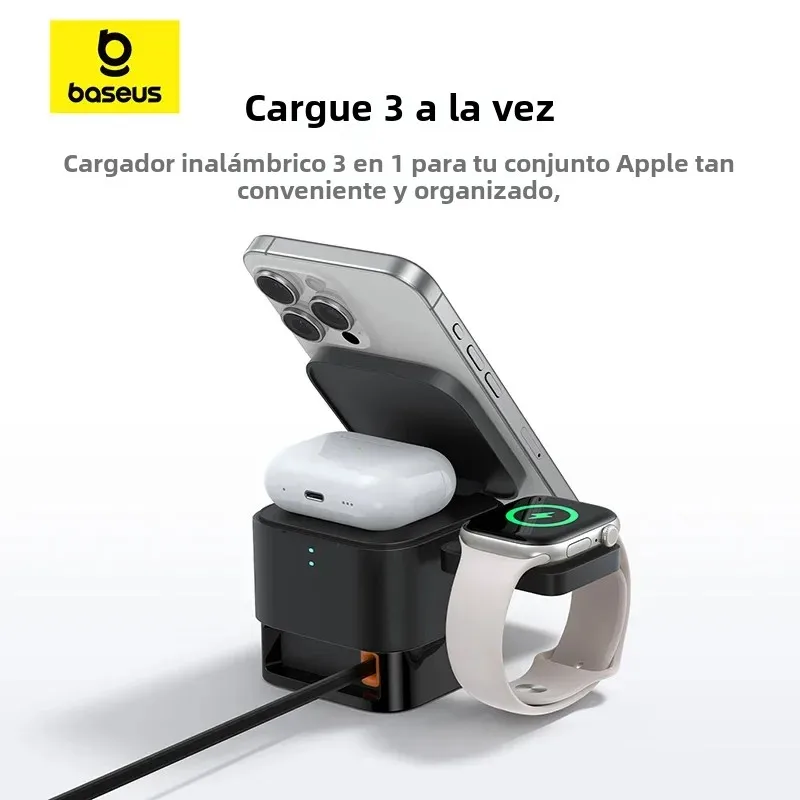 Comprar Baseus 3 en 1 25W soporte de cargador inalámbrico magnético 15W estación de carga inalámbrica rápida de escritorio para iPhone16 15 14 13 Airpod
