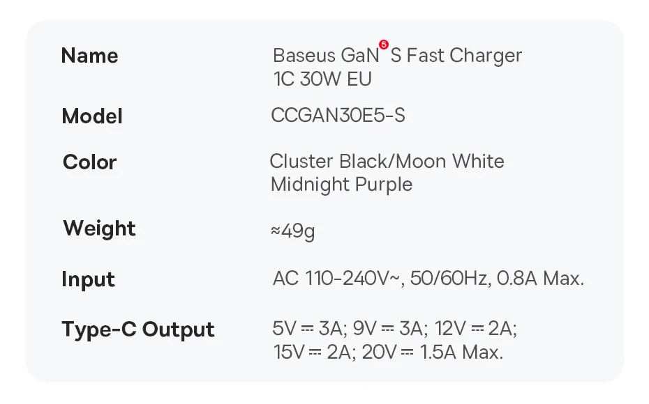 Cargador excelente, compatible con los formatos que necesito. ¡Al menos el OnePlus 13 se carga sin ningún problema! Recomiendo Tenga en cuenta que la entrada es Tipo-C.