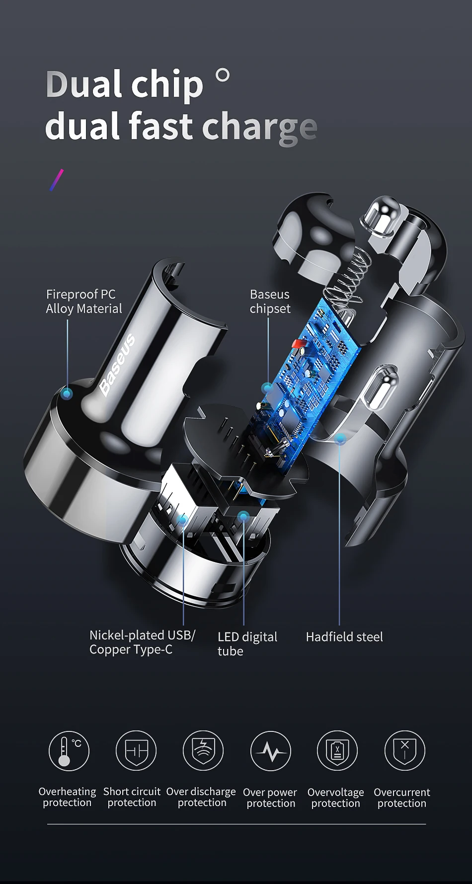 Comprar Baseus 45w carga rápida 4,0 3,0 cargador de coche USB para iPhone Xiaomi Samsung QC4.0 QC3.0 QC tipo C PD cargador de teléfono móvil rápido para coche