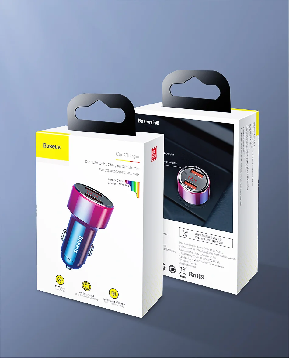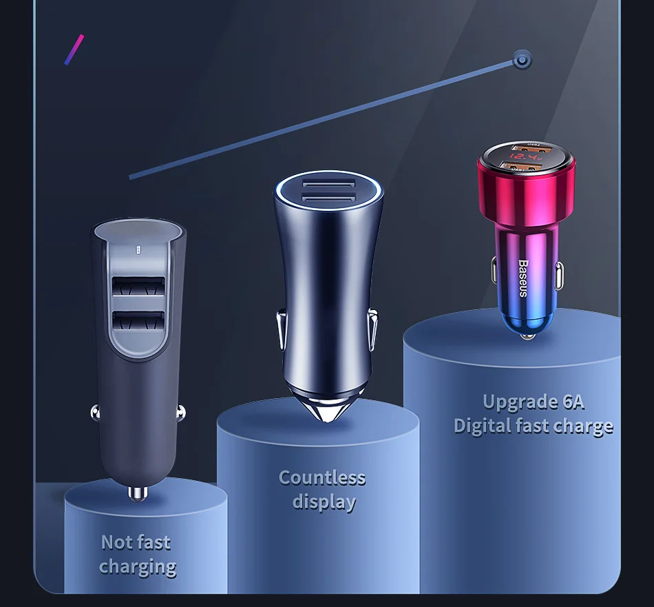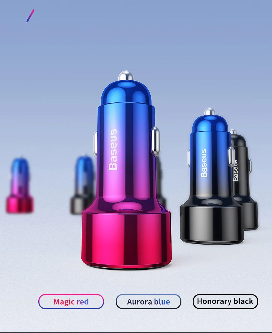Comprar Baseus 45W cargador de coche QC 4,0 3,0 para Xiaomi Huawei Supercharge SCP Samsung AFC carga rápida PD USB C carga de teléfono portátil
