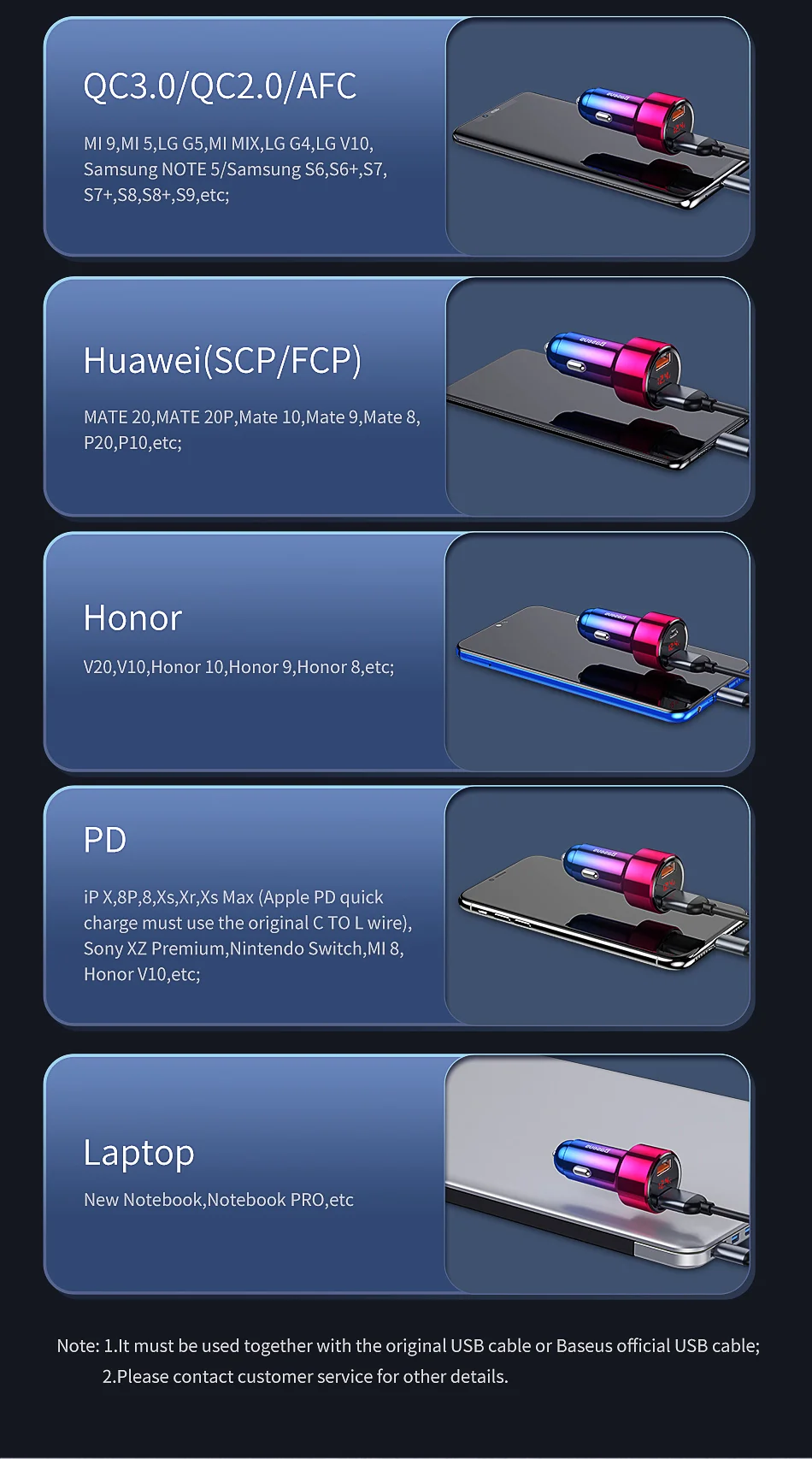 1.QC4.0 solo está disponible en puerto tipo c a tipo c y necesita un cable compatible con QC4.0, el puerto USB solo admite QC3.0.