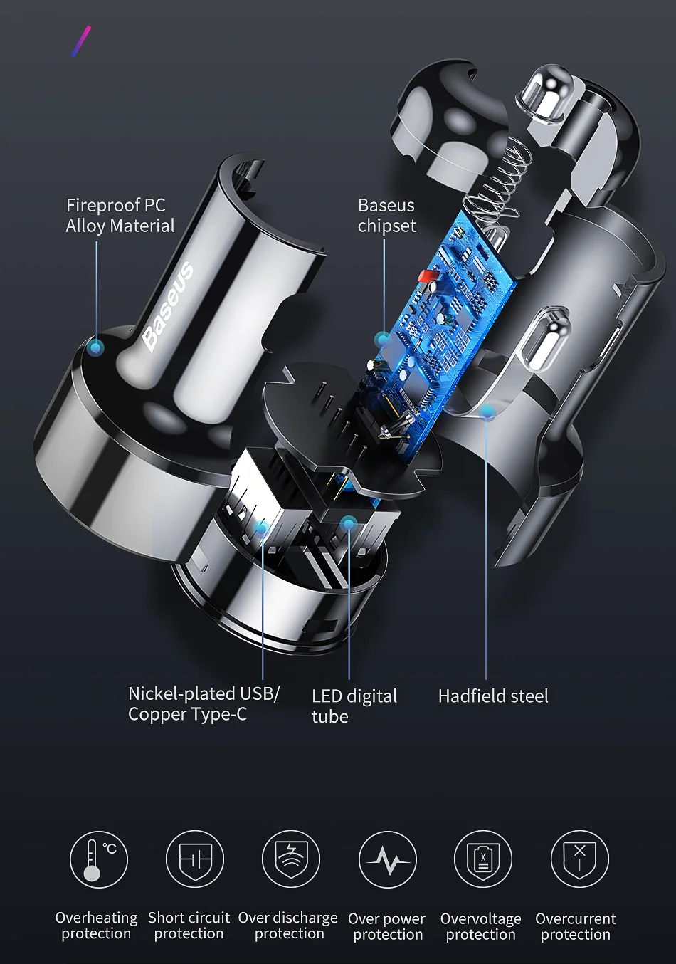 1. Los puertos duales admiten carga rápida/alta potencia de 2,45 W/3. derivación inteligente