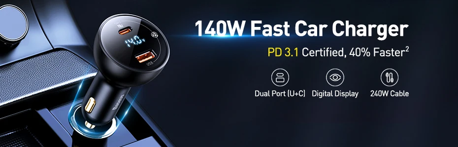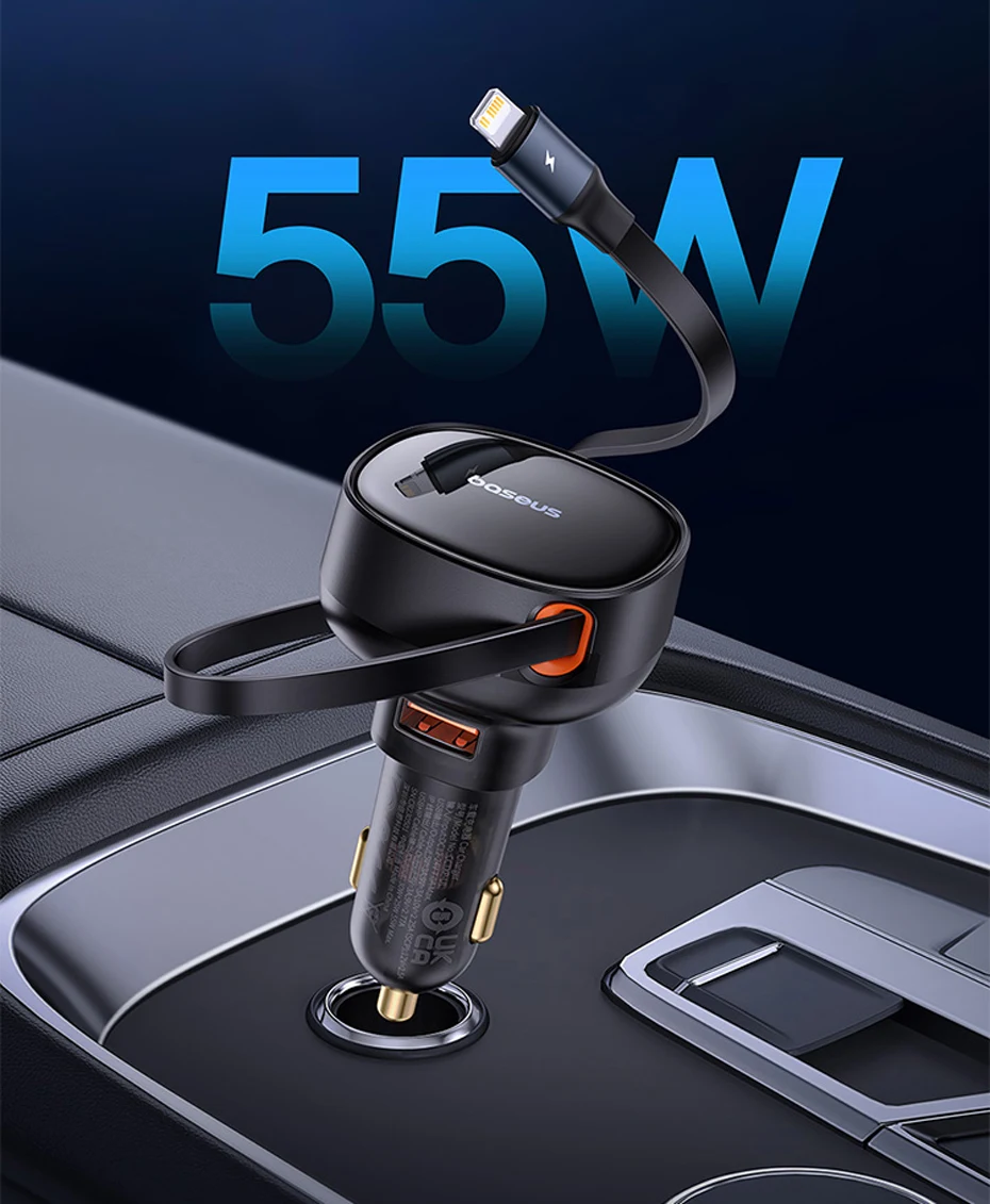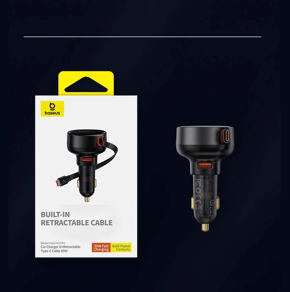 Cargador de coche Baseus U + Cable retráctil tipo C 60W