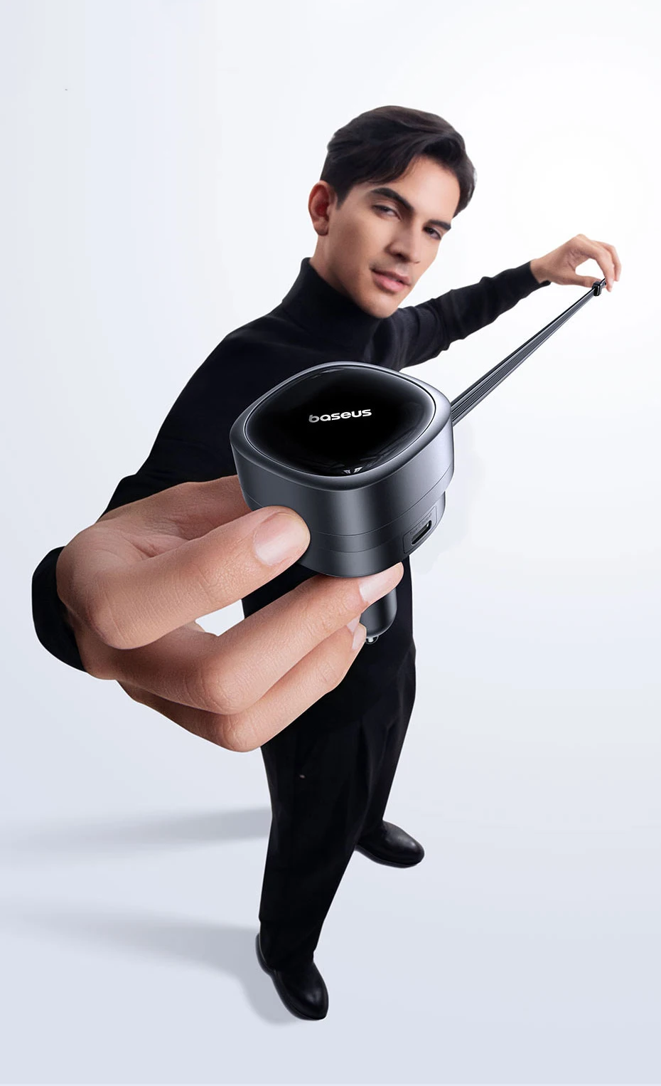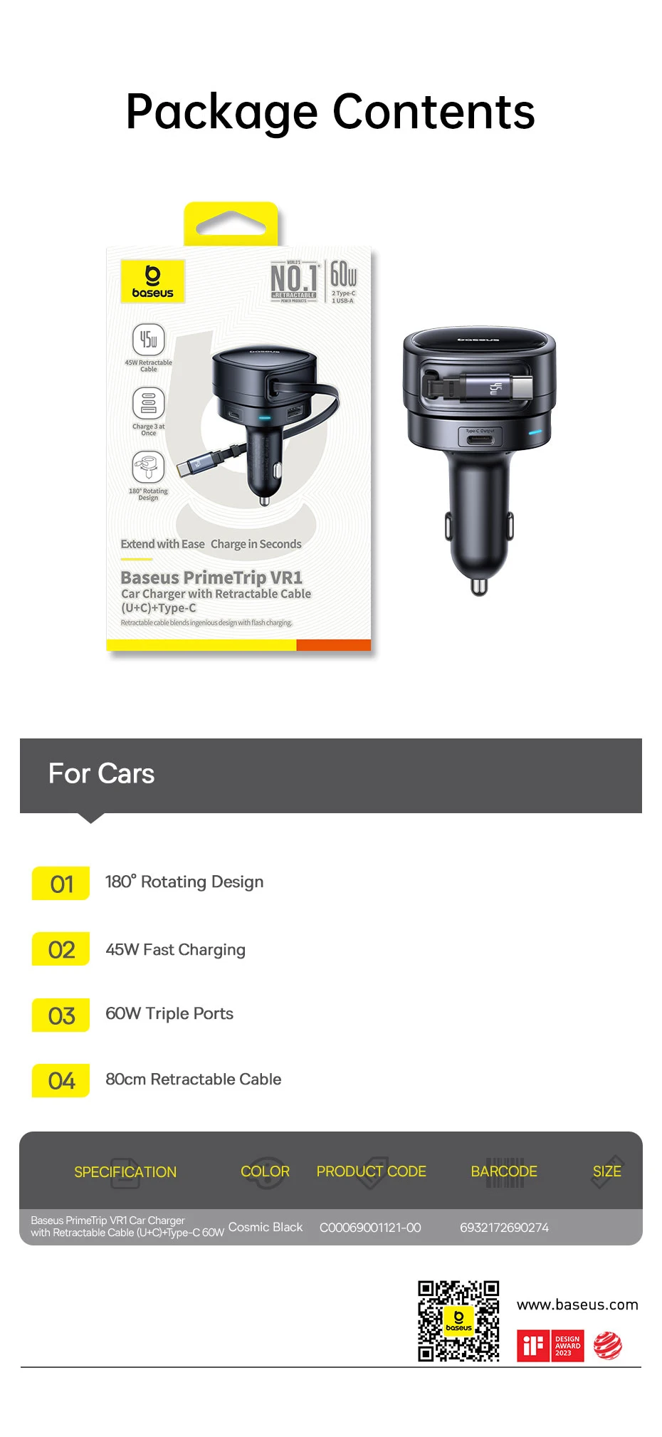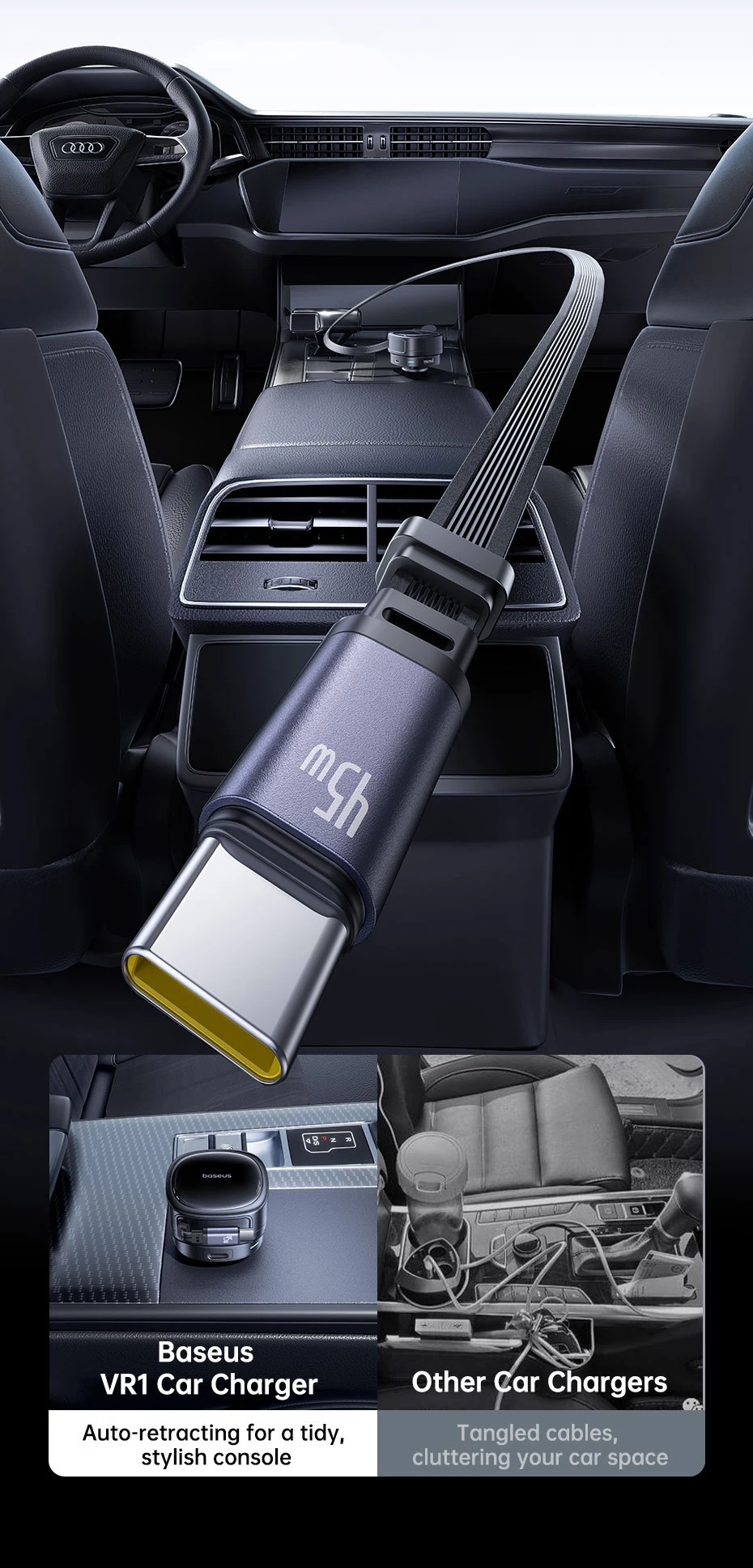 Cargador de coche Baseus PrimeTrip VR1 con cable retráctil