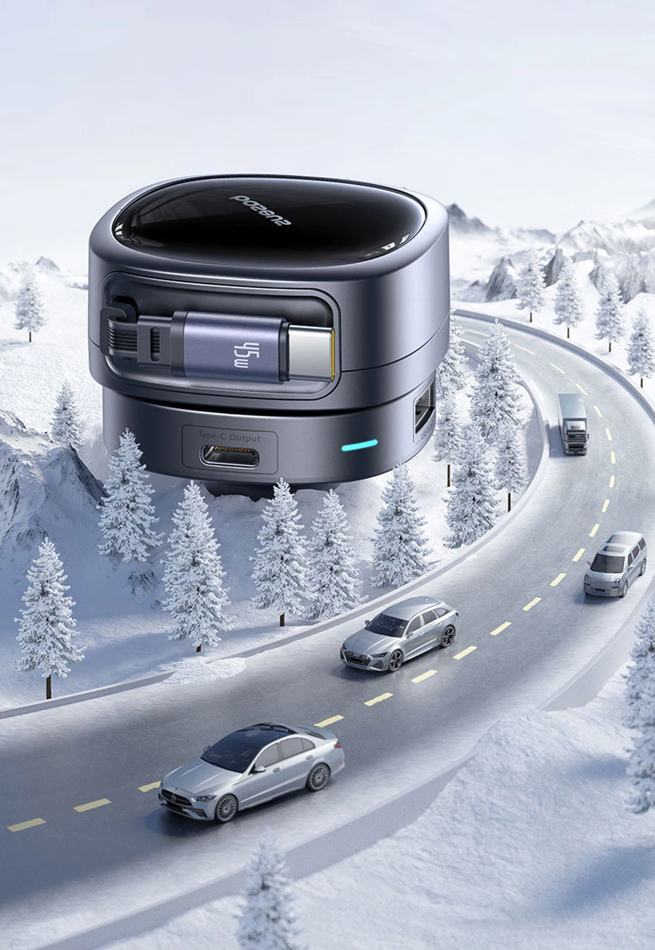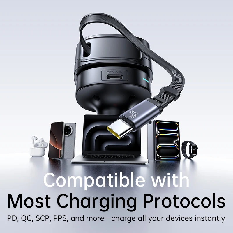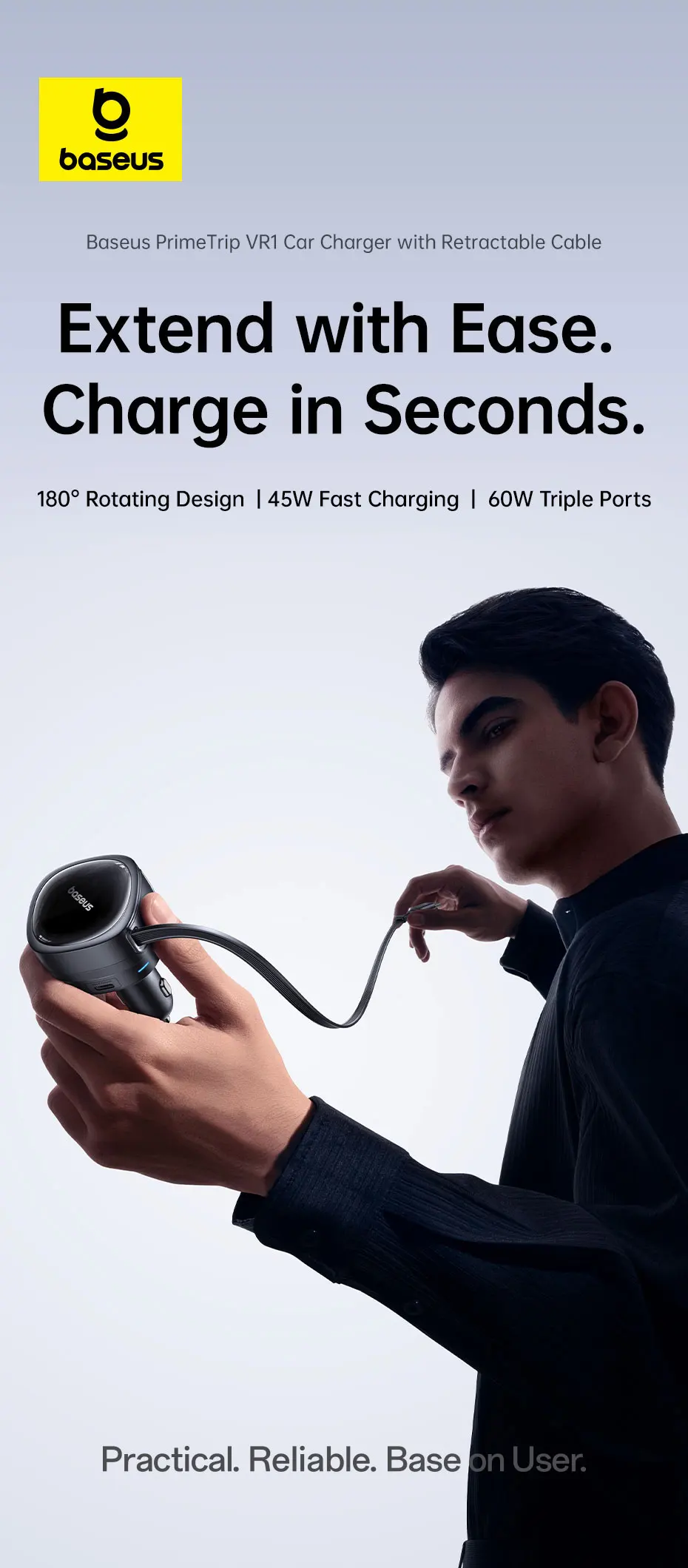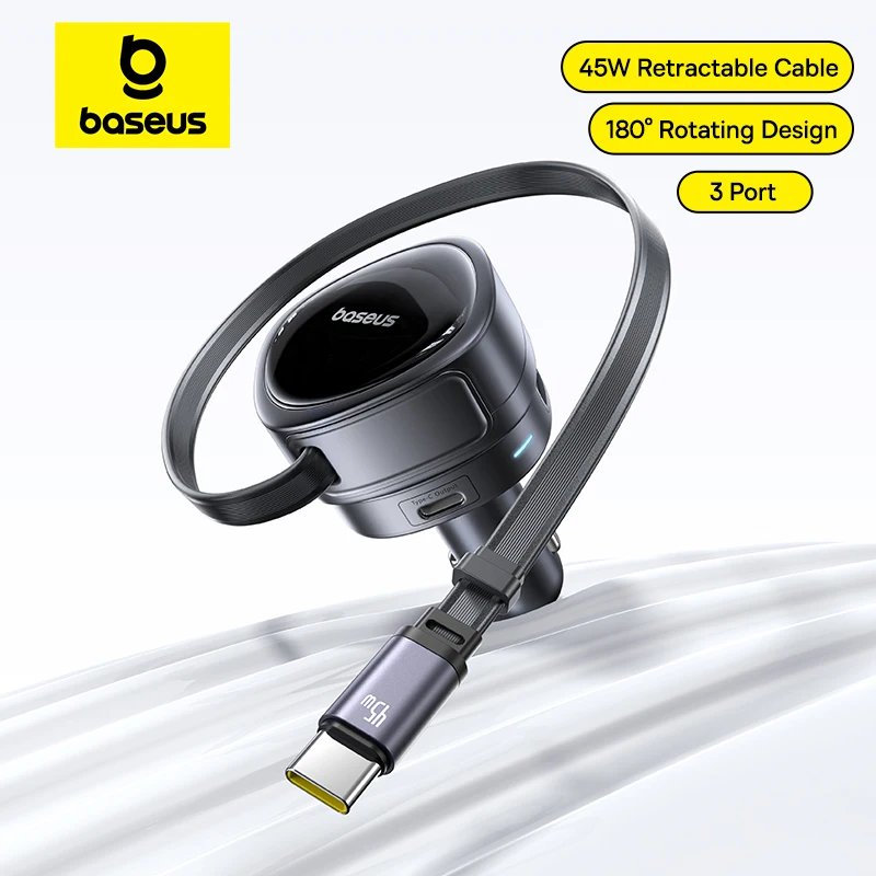 Cargador de coche Baseus PrimeTrip VR1 con cable retráctil
