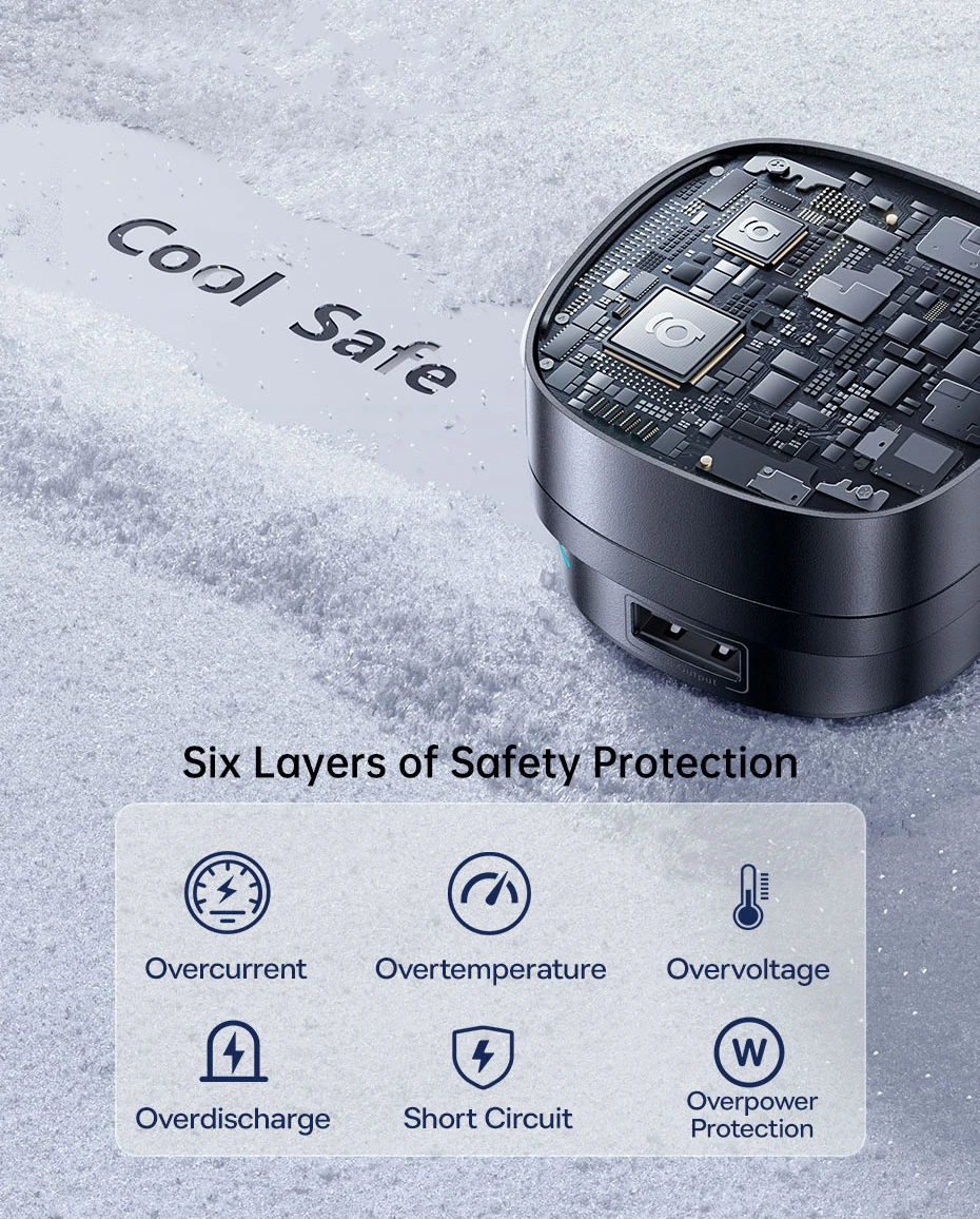 El chip inteligente mantiene la carga eficiente y segura, sin sobrecalentamiento.