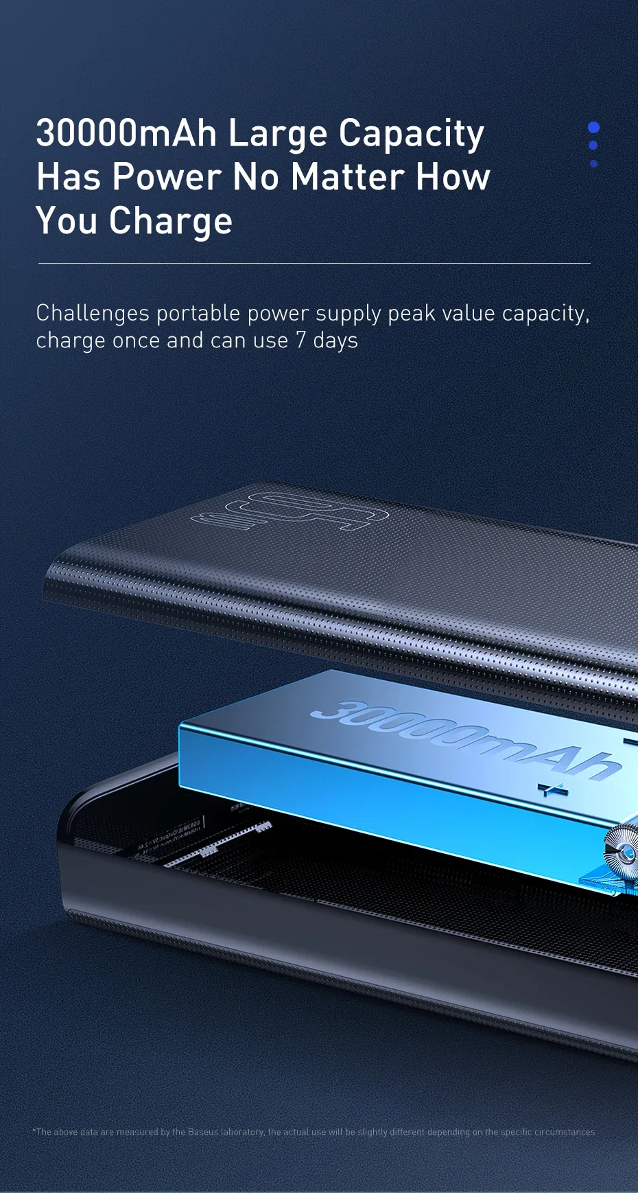 La gran capacidad de 30000mAh tiene potencia sin importar cómo lo cargue