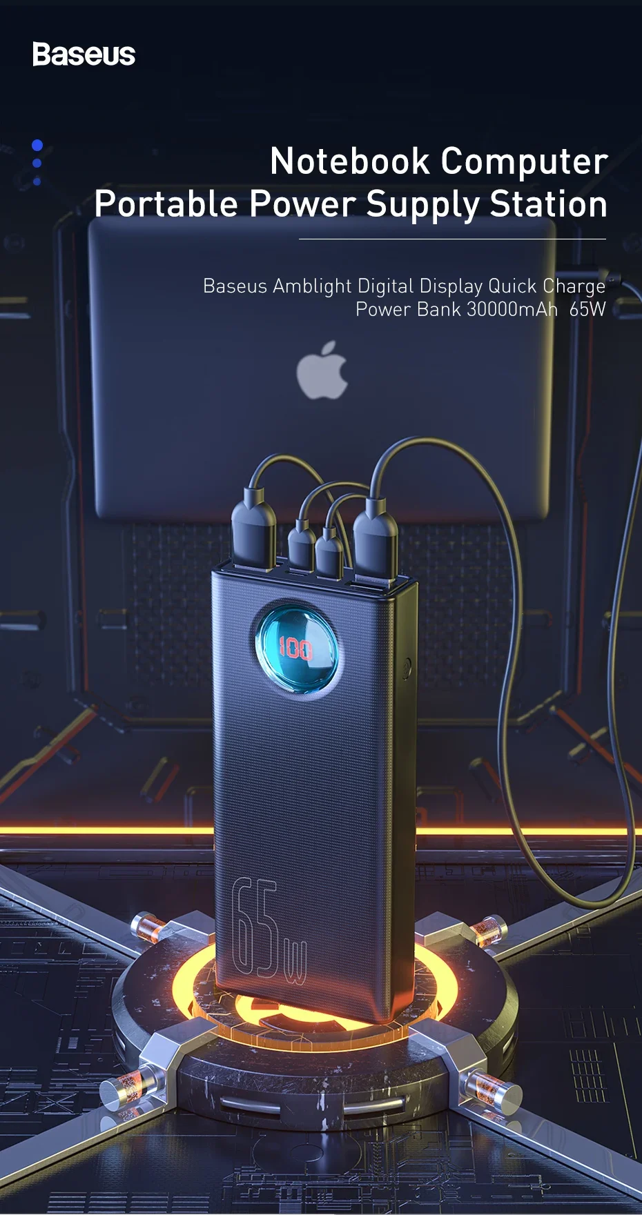 Amblight Digital Display Carga Rápida Power Bank 30000mAh 65W