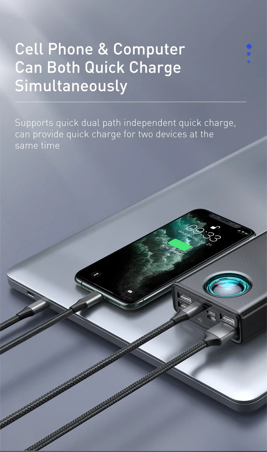 Tanto el teléfono móvil como el ordenador pueden cargarse rápidamente simultáneamente