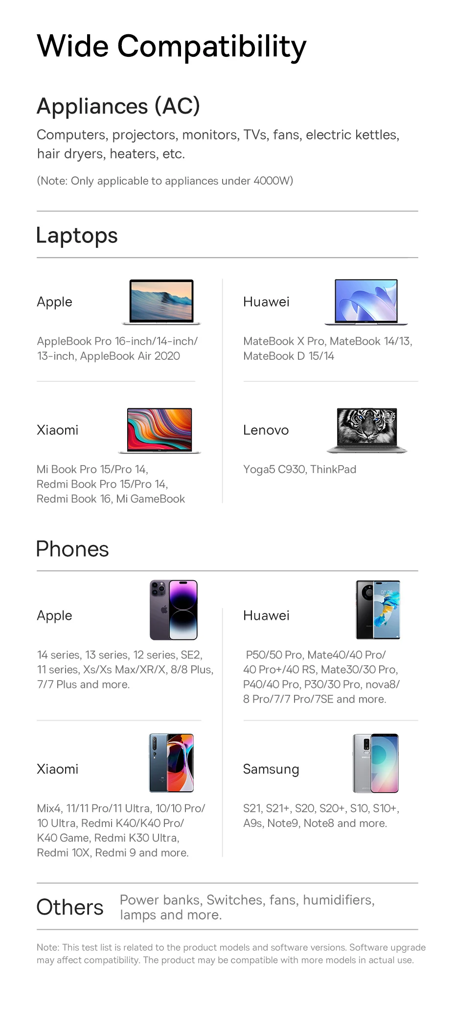 AC/DC con cable de carga, mejor diseño para los puertos de salida.