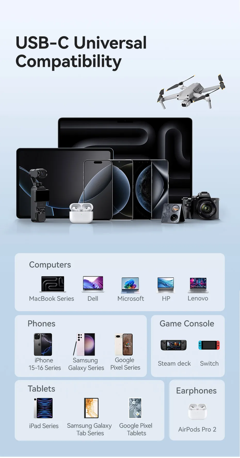 ✔Para ordenadores, teléfonos, tabletas, consolas de juegos, auriculares.