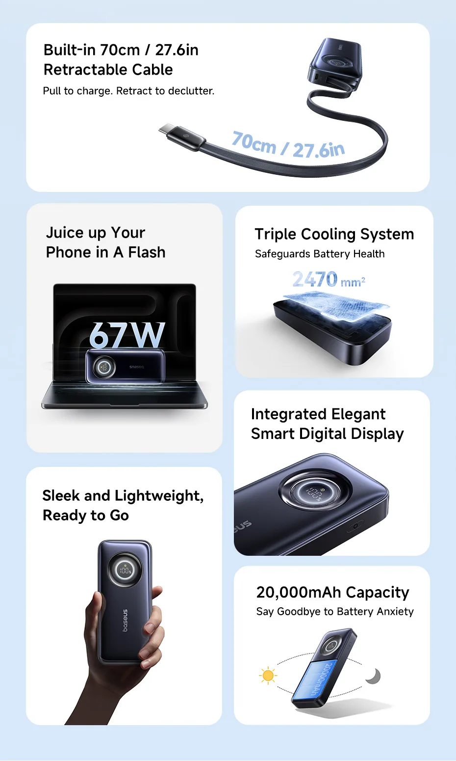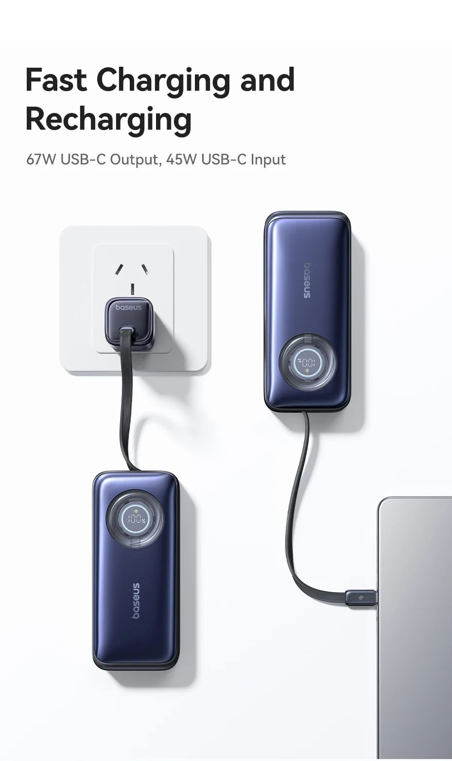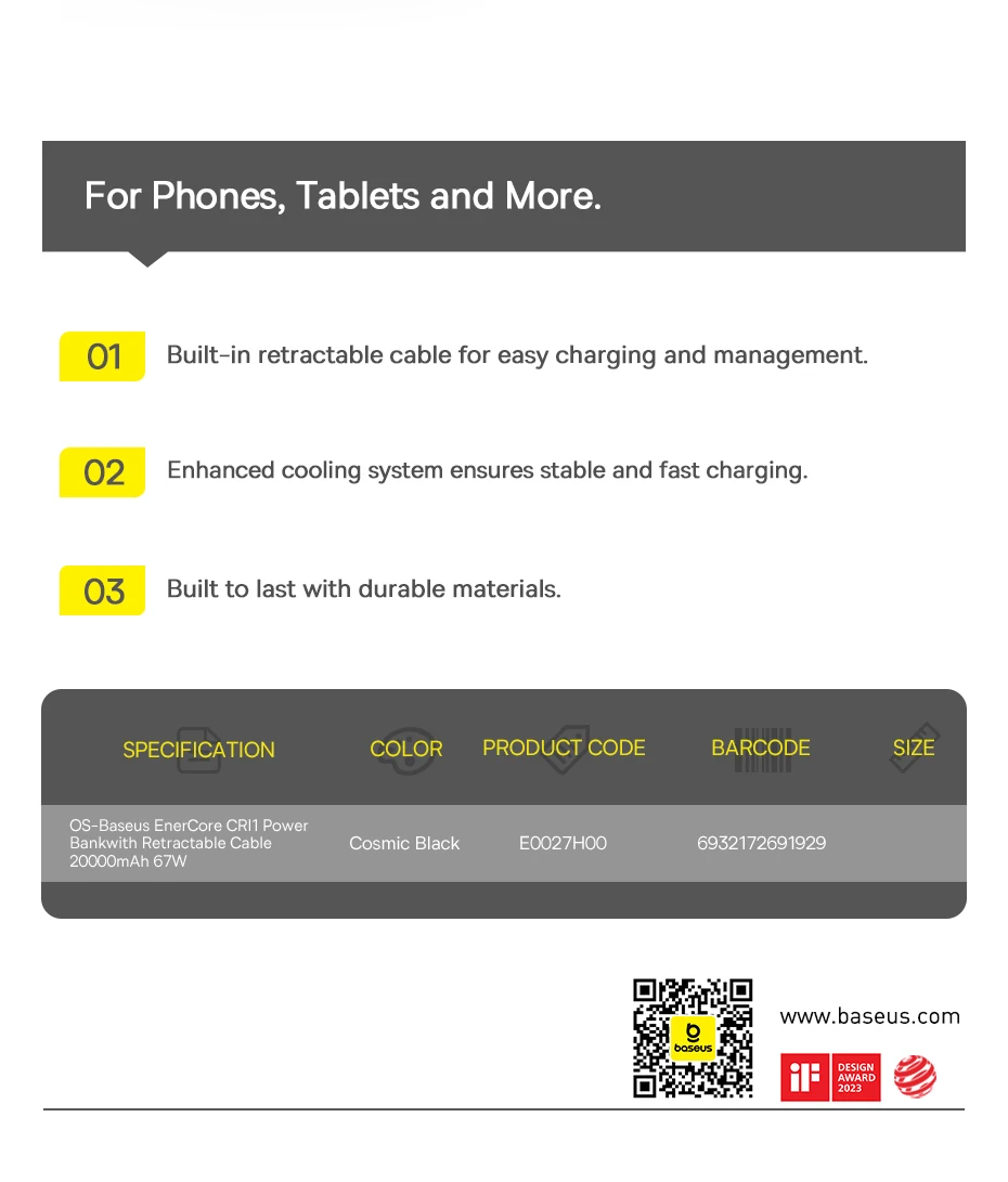 1.Nombre: Banco de energía OS-Baseus EnerCore CR11 con cable retráctil 20000mAh 67W