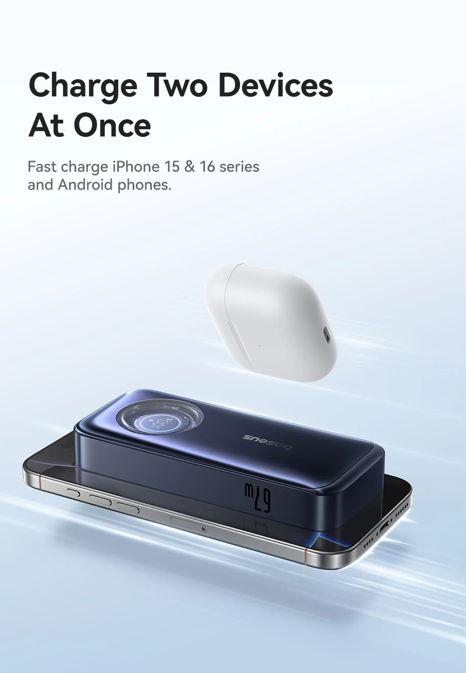 Carga rápida de teléfonos iPhone 15 y 16 series y Android.