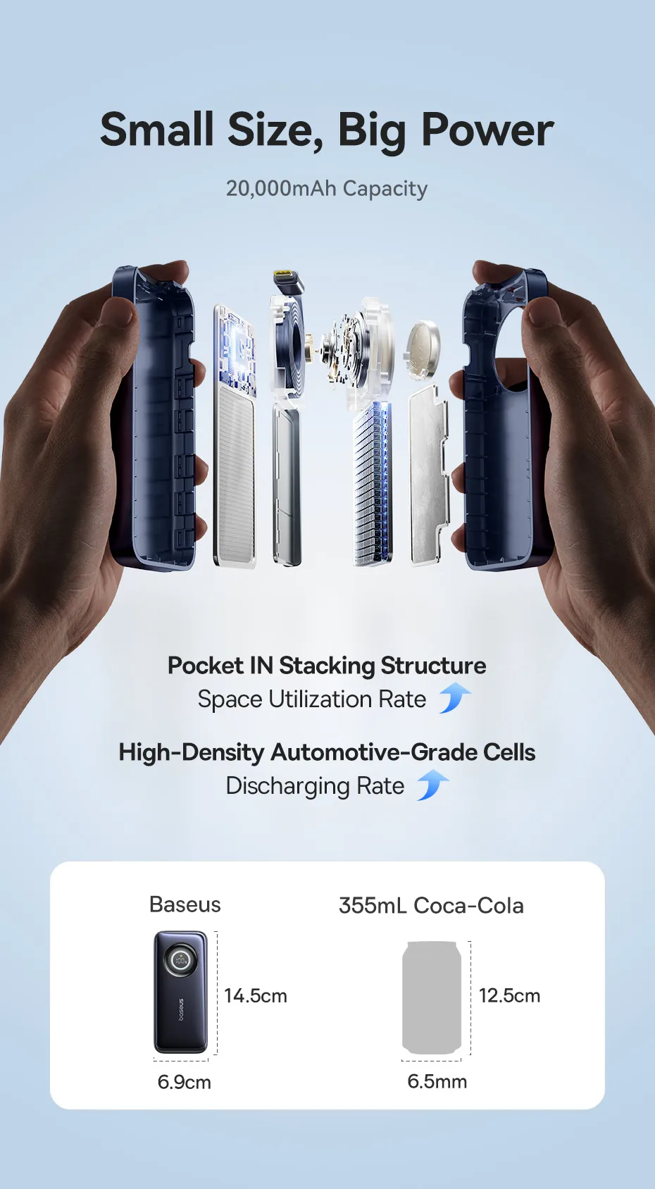 Tamaño del banco de energía Baseus CR11: 14,5 cm * 6,9 cm