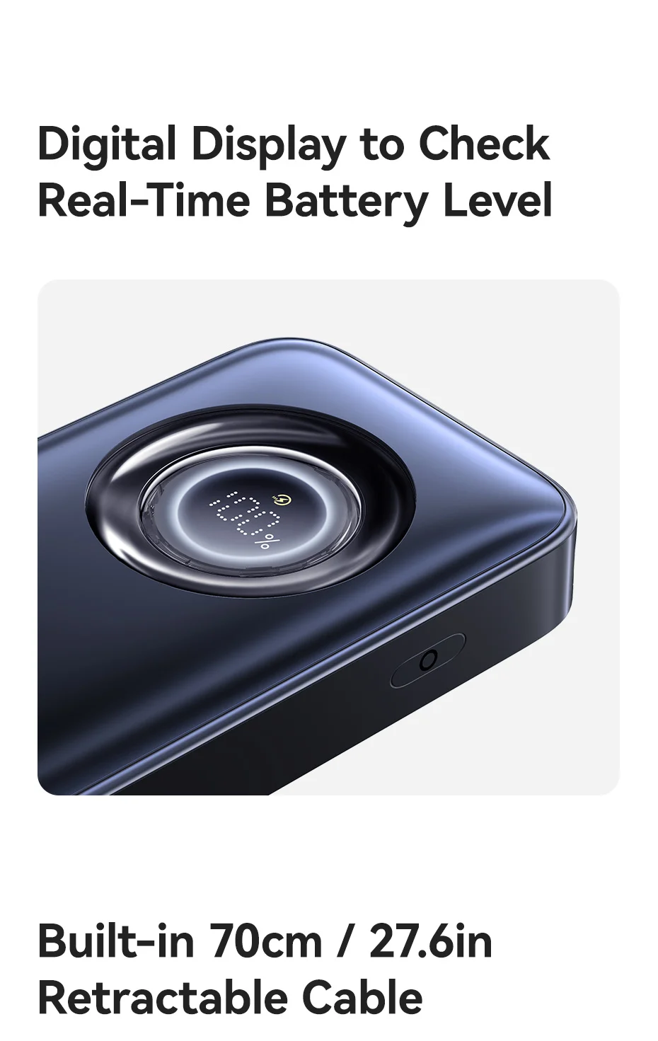 1.Cable retráctil incorporado de 70 cm/27,6 pulgadas, tire para cargar, retírelo para ordenar.