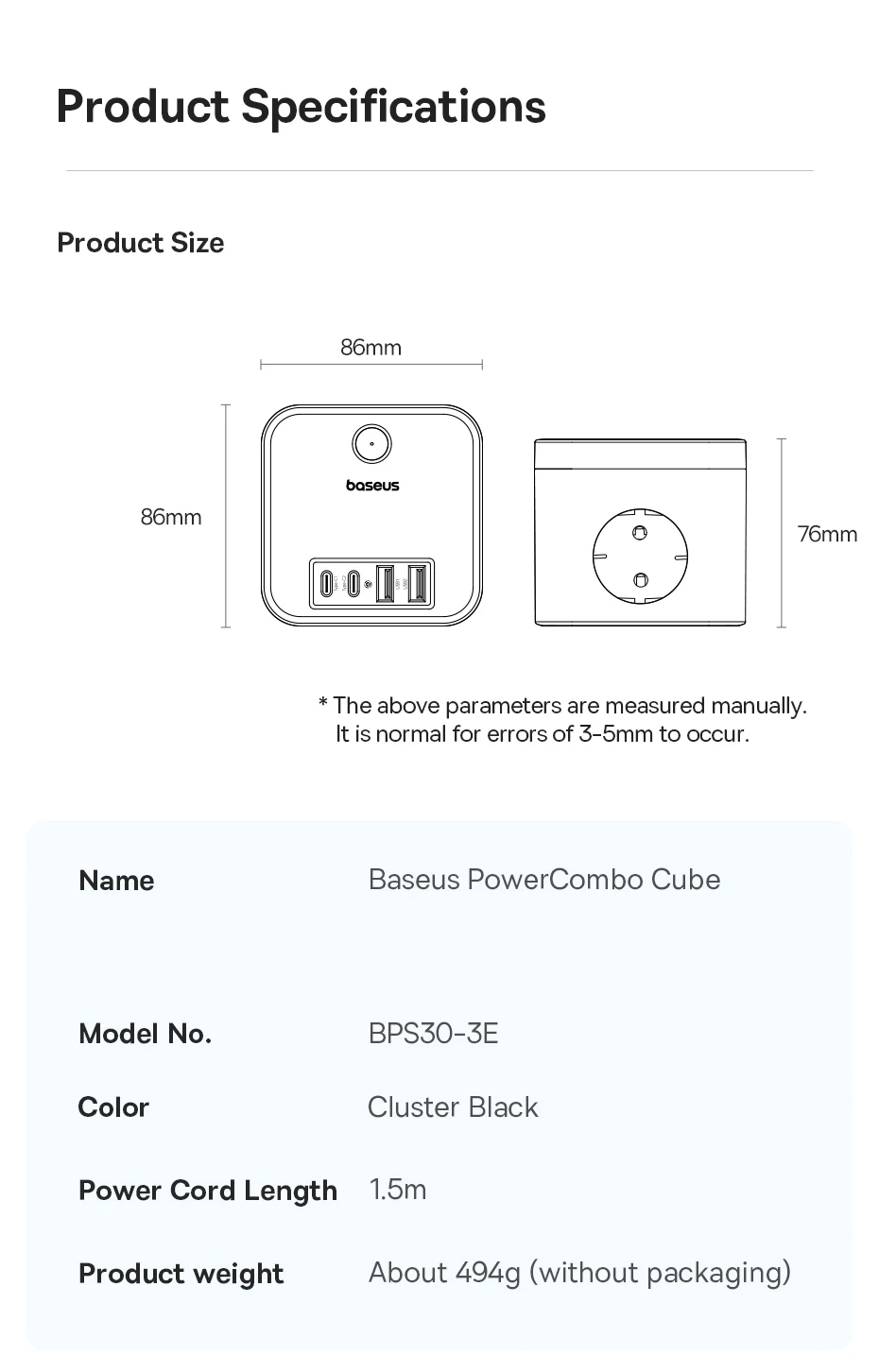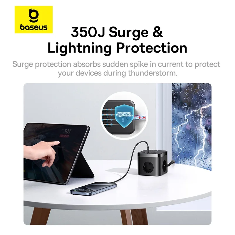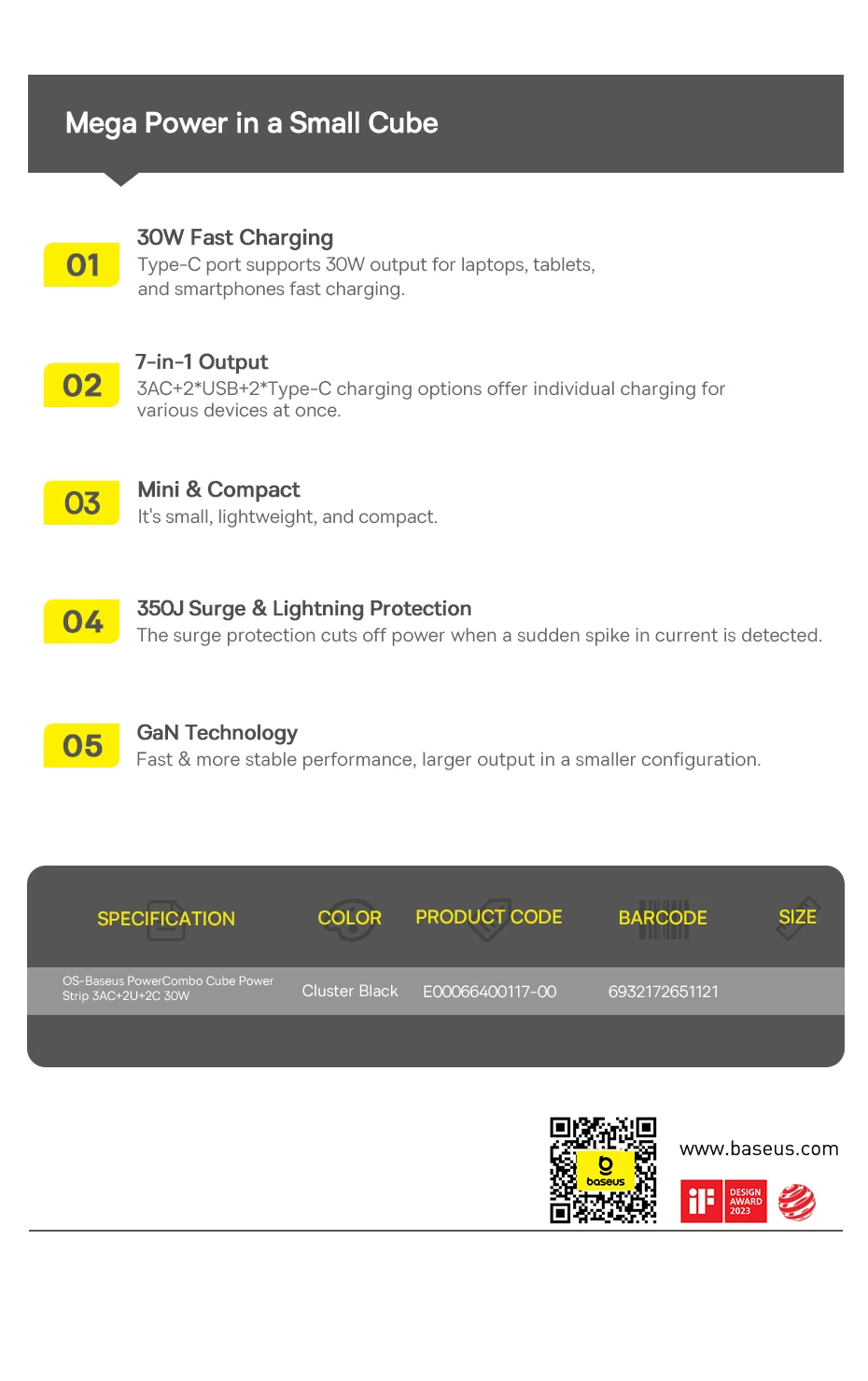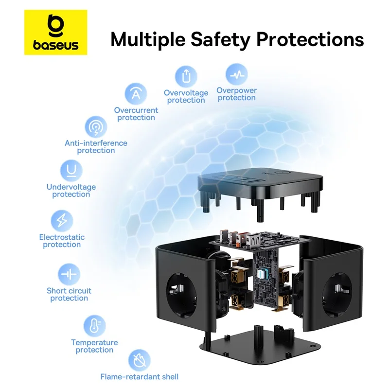 Comprar Baseus 7 en 1 múltiples puertos cargador rápido regleta 3AC extensor de enchufe para iPhone 15 tabletas auriculares relojes inteligentes