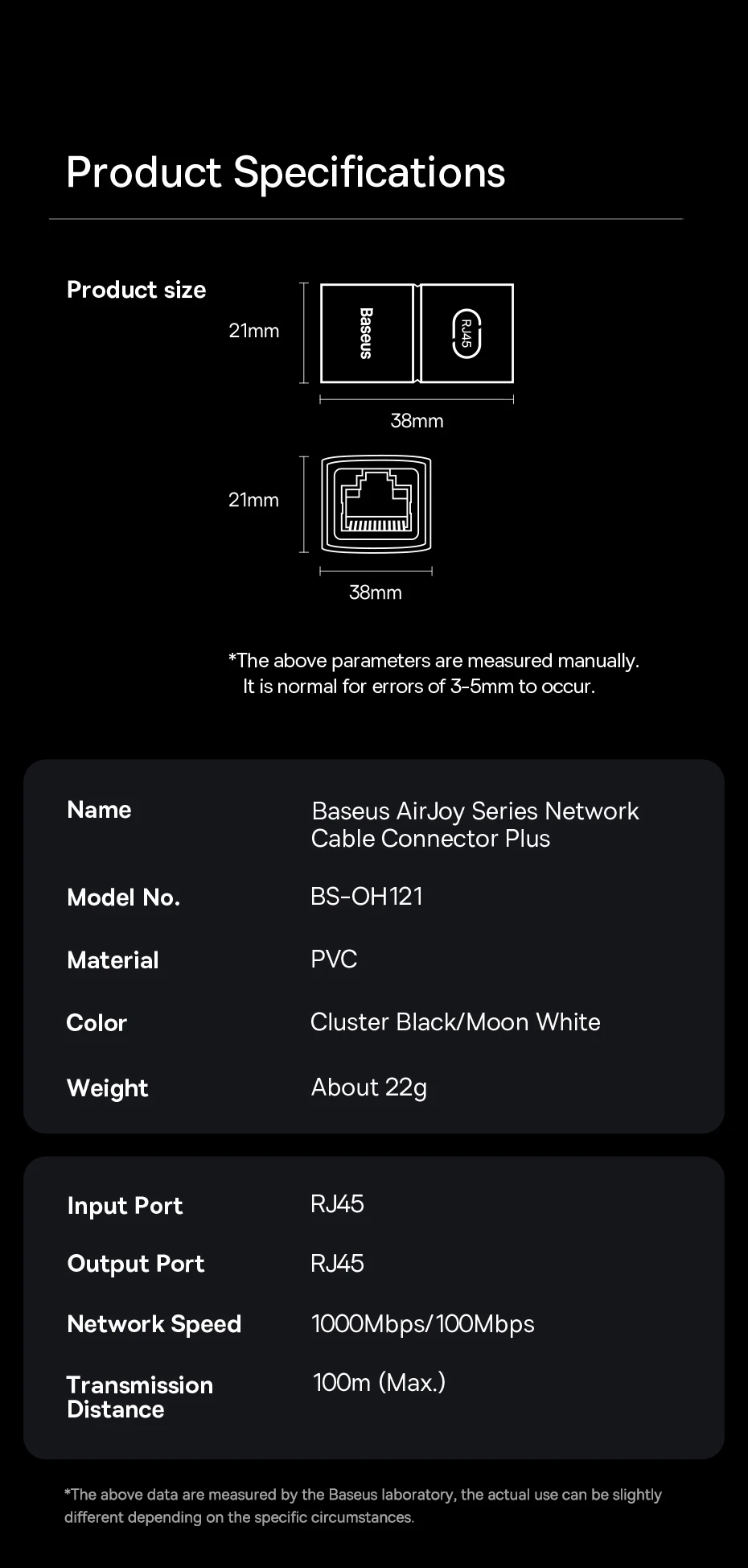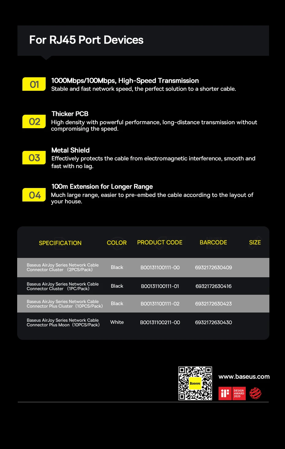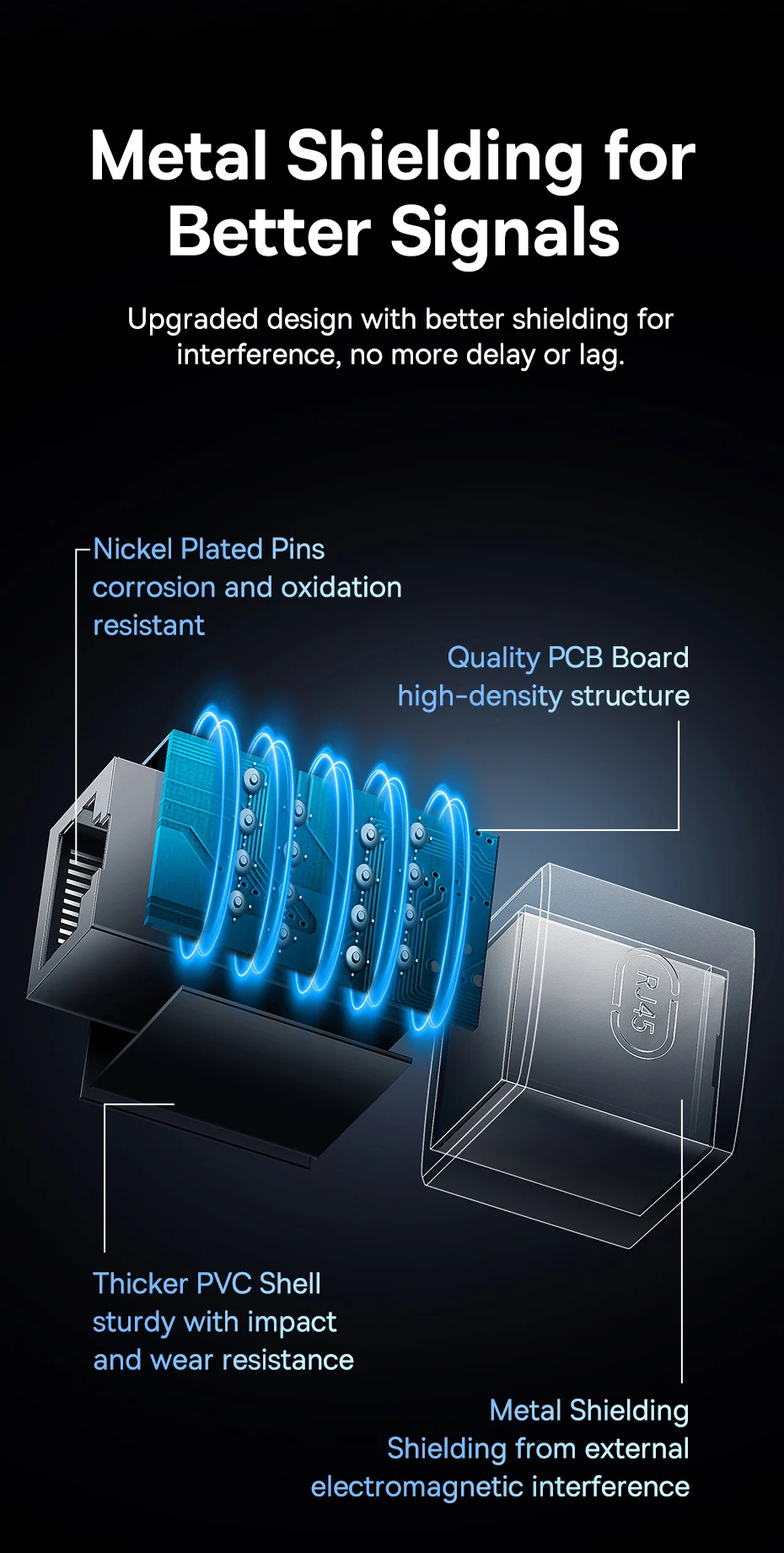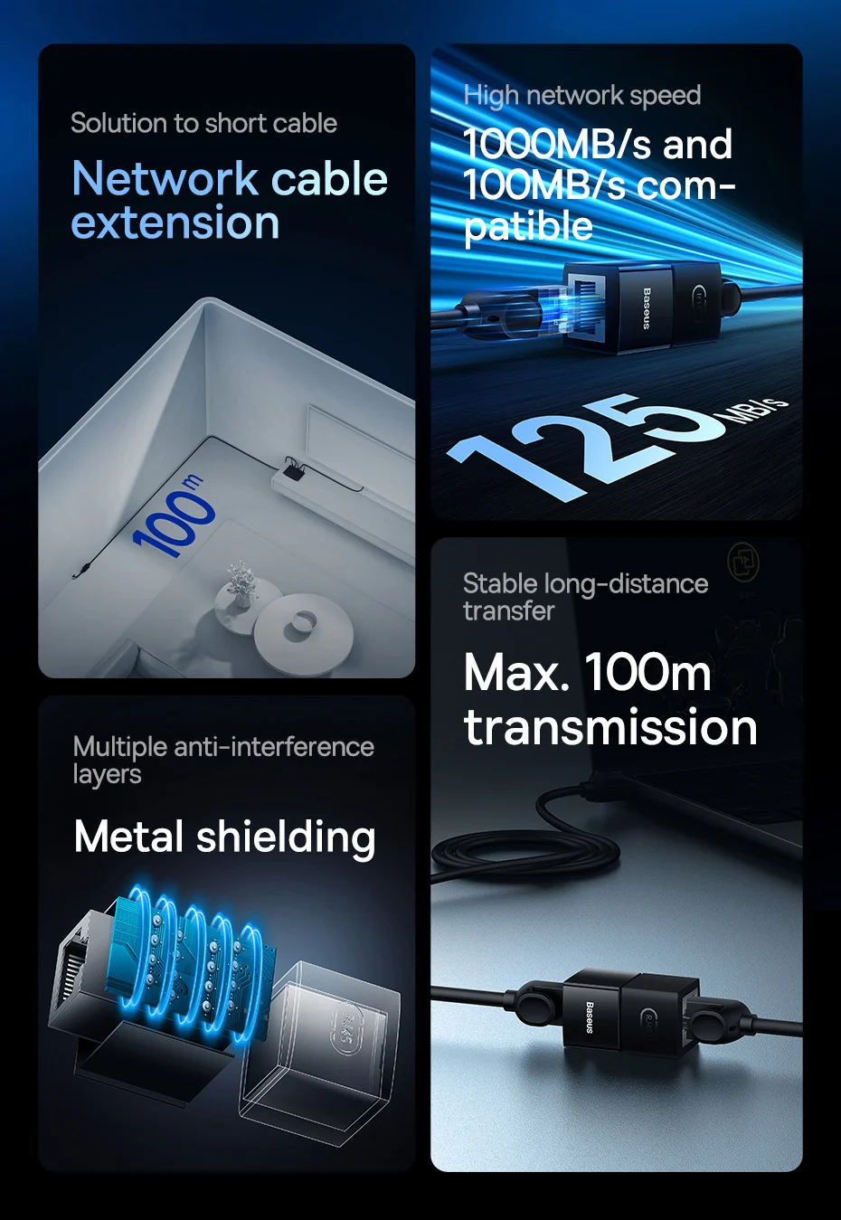 Comprar Baseus-adaptador Ethernet RJ45 Cat7 Cat6, Cable extensor de red para Cable Ethernet, Gigabit hembra a hembra