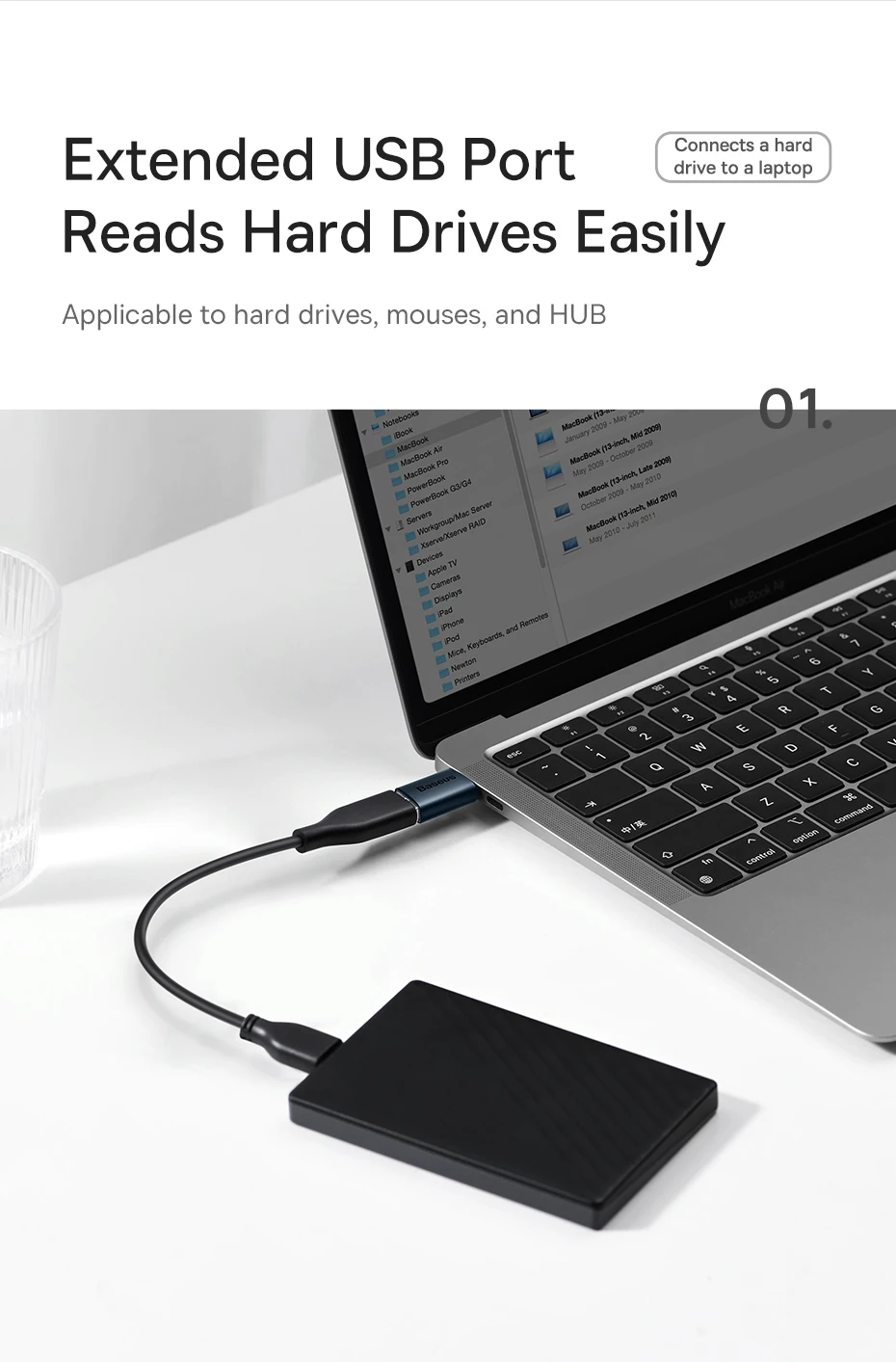 • Carga rápida :Cargue sus dispositivos rápidamente con el adaptador de transferencia de datos USB OTG de Baseus.