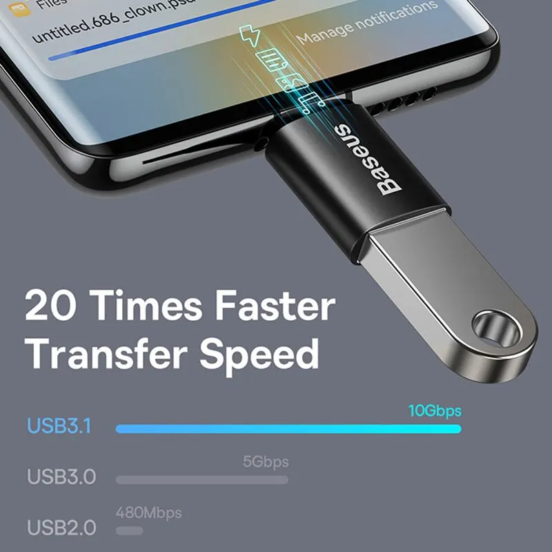 • Carga rápida :Cargue sus dispositivos rápidamente con el adaptador de transferencia de datos USB OTG de Baseus.