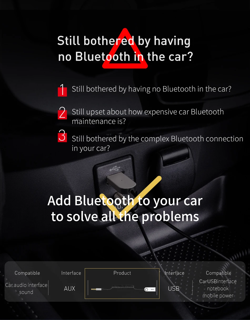 uetooth Adapter Cable for Car 3.5mm Jack Aux Bluetooth V5.0 4.2 4.0 Bluetooth Receiver Speaker Audio Transmitte