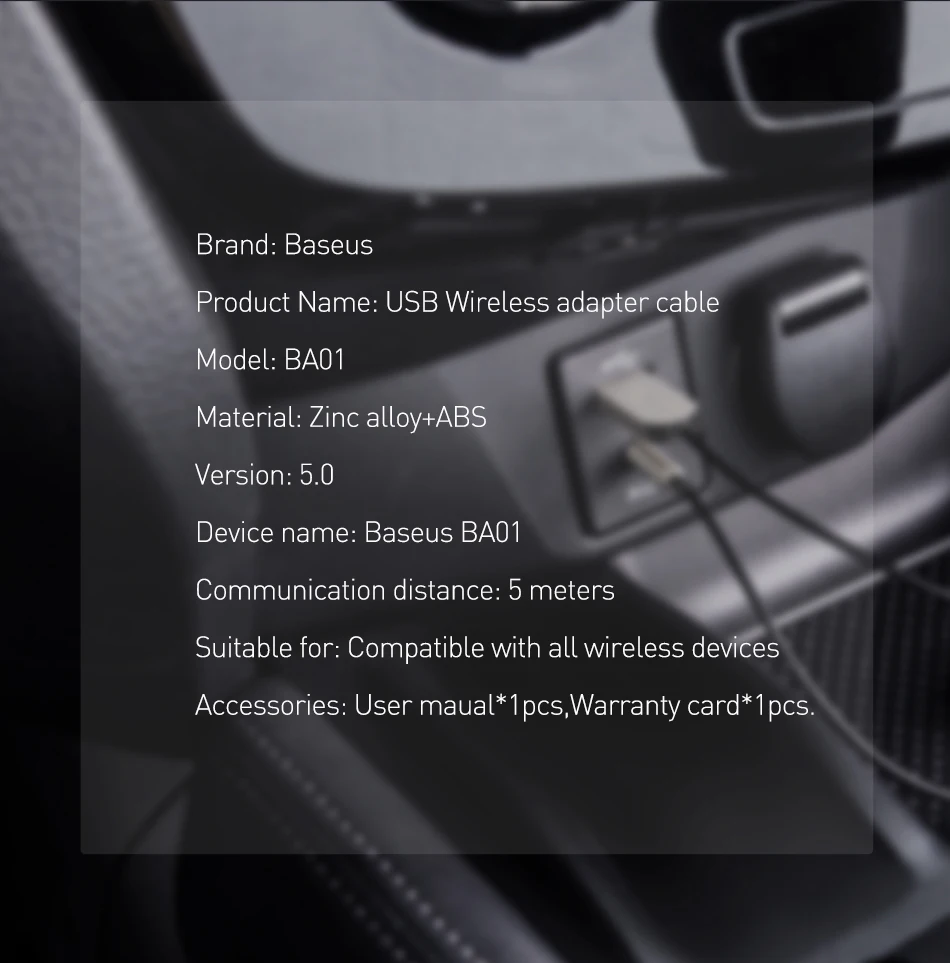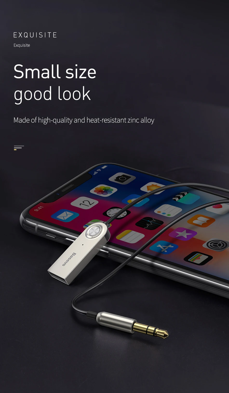 Comprar Baseus-Adaptador USB BA01 con Bluetooth V5.0, receptor Aux, transmisor de Audio, Dongle Bluetooth para coche, adaptador Jack de 3,5mm