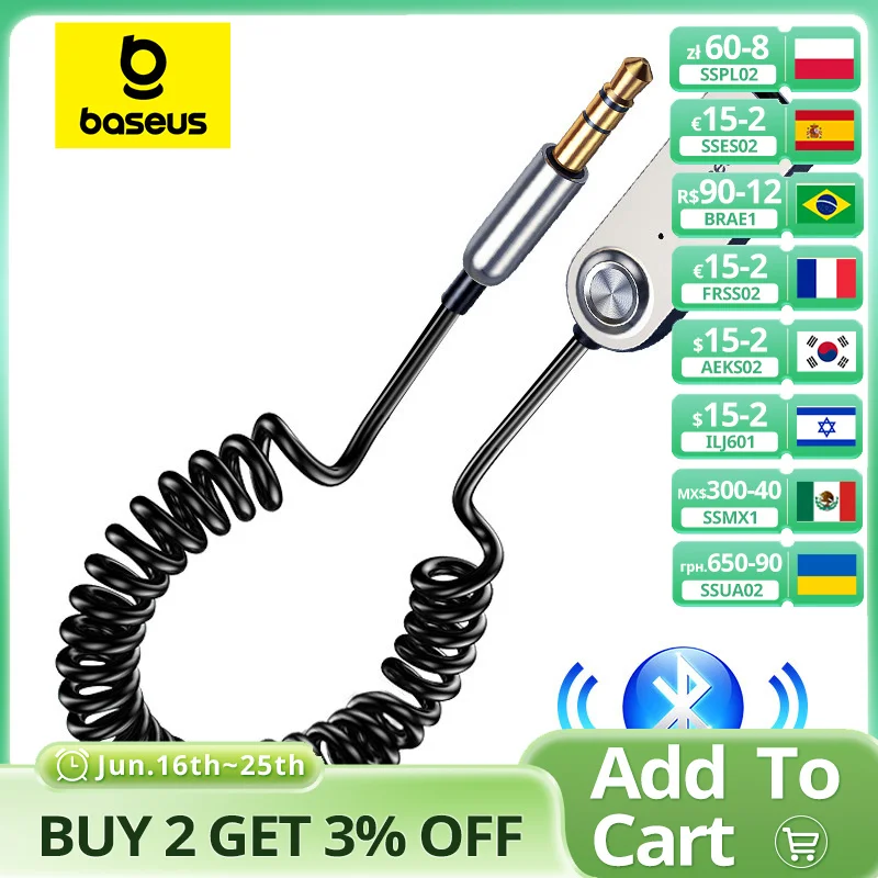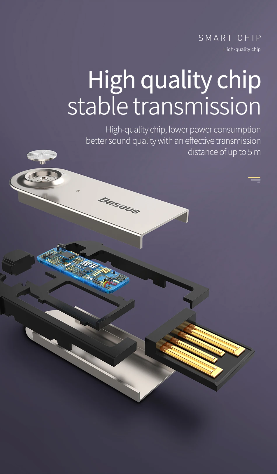 Comprar Baseus-Adaptador USB BA01 con Bluetooth V5.0, receptor Aux, transmisor de Audio, Dongle Bluetooth para coche, adaptador Jack de 3,5mm