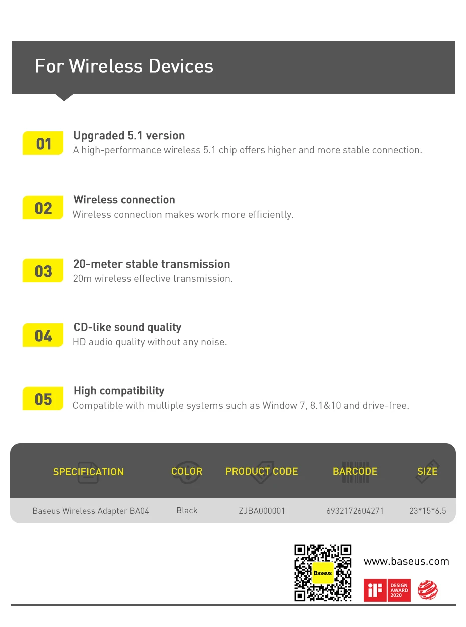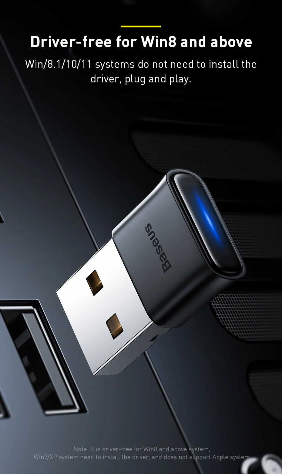 Comprar Baseus-Adaptador USB Bluetooth 5,1, Dongle Aux, receptor de Audio, transmisor para PC, altavoz, portátil, ratón inalámbrico
