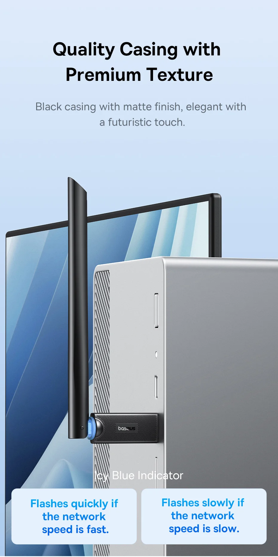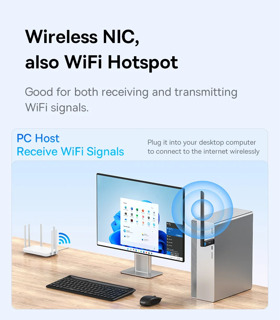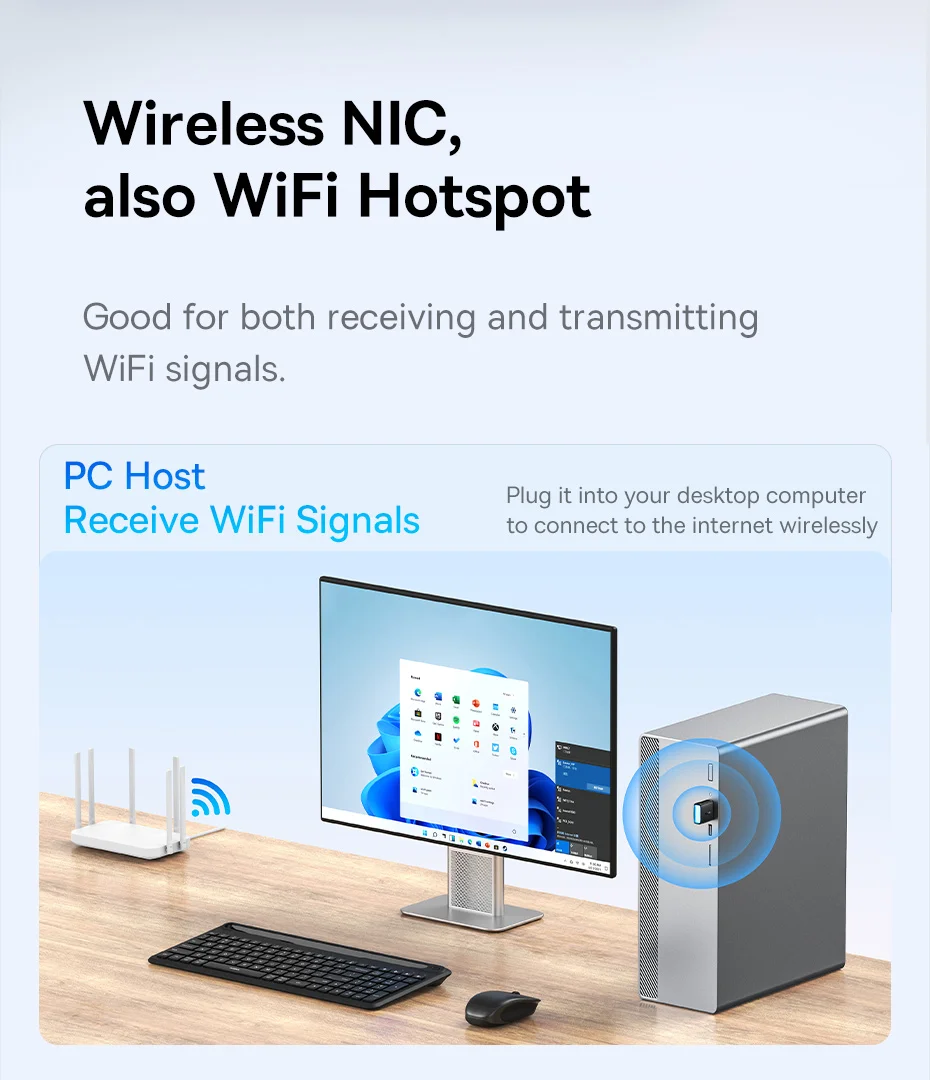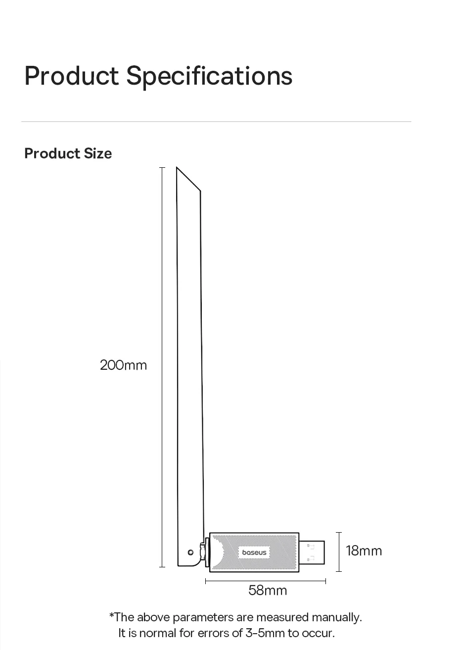 Baseus-adaptador WiFi 2,4G y 5G, tarjeta de red LAN inalámbrica USB, receptor WiFi, Dongle de antena Ethernet para ordenador de escritorio, portátil, Windows y Linux
