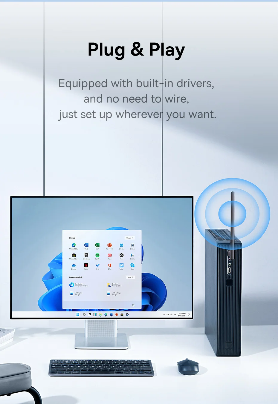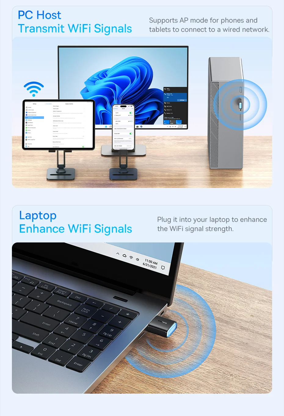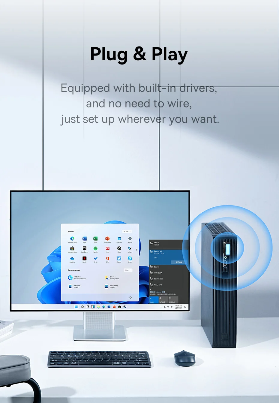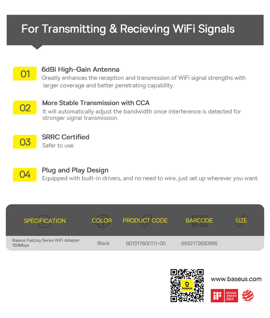 Baseus-adaptador WiFi 2,4G y 5G, tarjeta de red LAN inalámbrica USB, receptor WiFi, Dongle de antena Ethernet para ordenador de escritorio, portátil, Windows y Linux