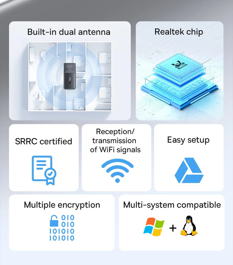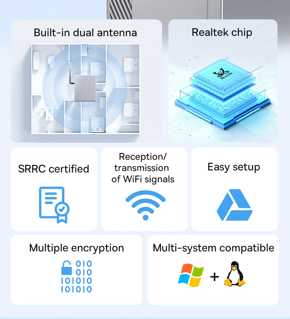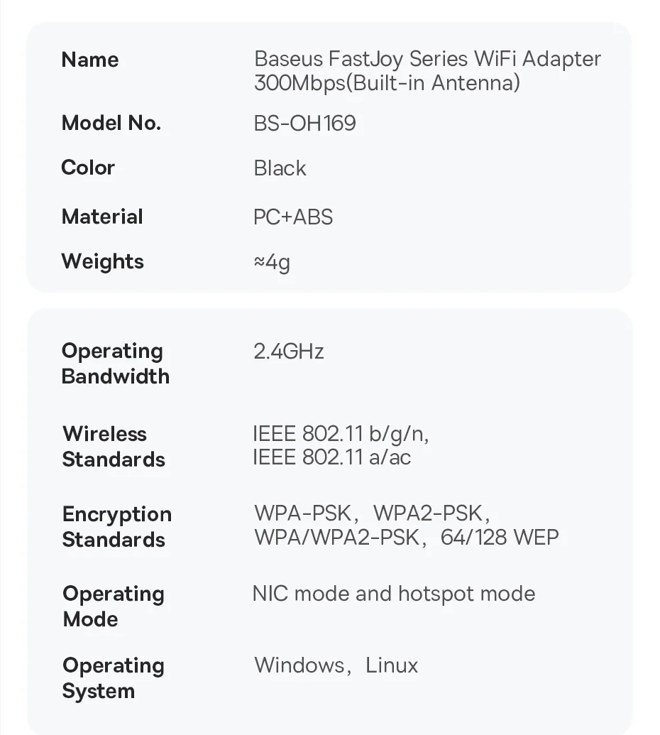Comprar Baseus-adaptador WiFi 2,4G y 5G, tarjeta de red LAN inalámbrica USB, receptor WiFi, Dongle de antena Ethernet para ordenador de escritorio, portátil, Windows y Linux
