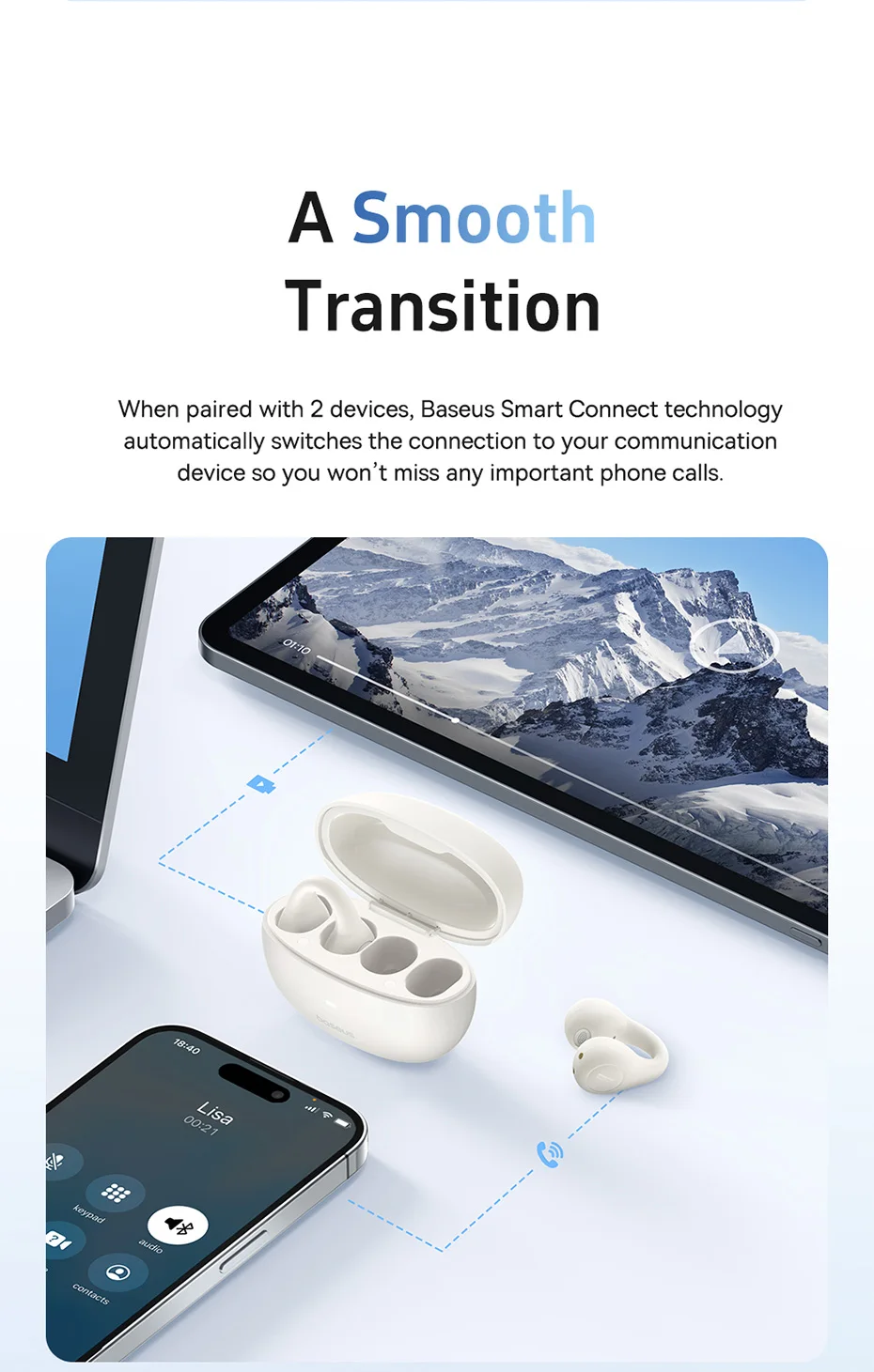 Cuando se combina con 2 dispositivos, la tecnología Baseus Smart Connect