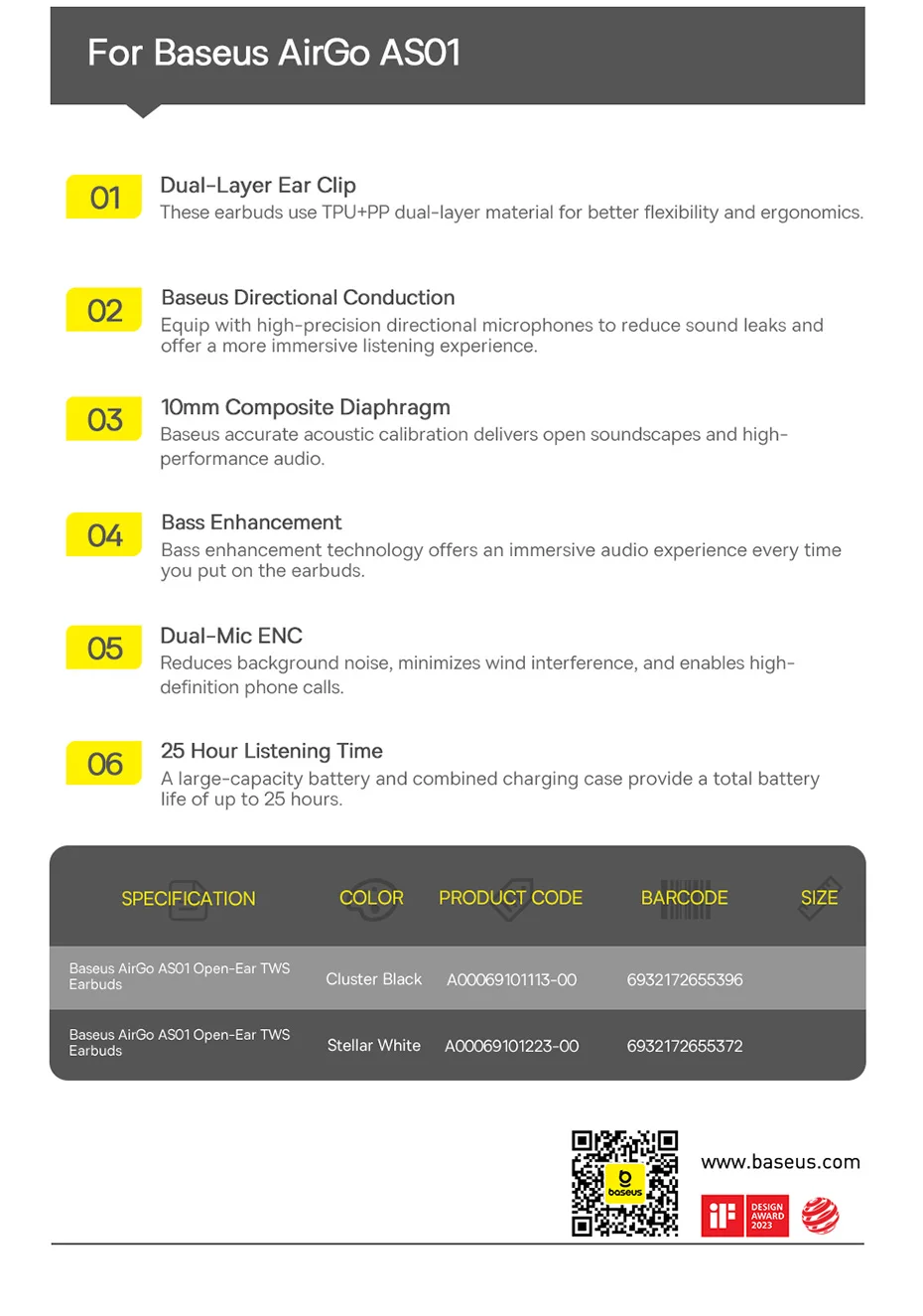Comprar Baseus AirGo AS01 auriculares con Clip para la oreja Bluetooth 5,3 auriculares deportivos inalámbricos con oreja abierta doble conexión 25h de reproducción auriculares TWS