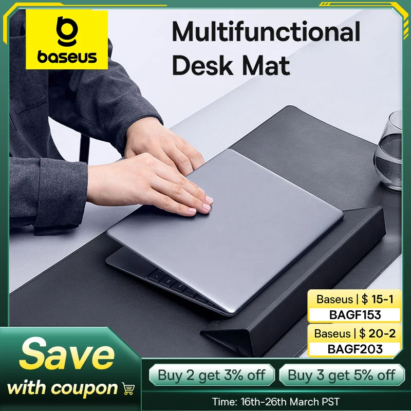 Comprar Baseus-alfombrilla de escritorio 3 en 1, alfombrilla de ratón multifunción, diseño ergonómico, reposamuñecas, soporte para teclado de ordenador portátil, soporte inteligente, alfombrilla para ratón de PU suave