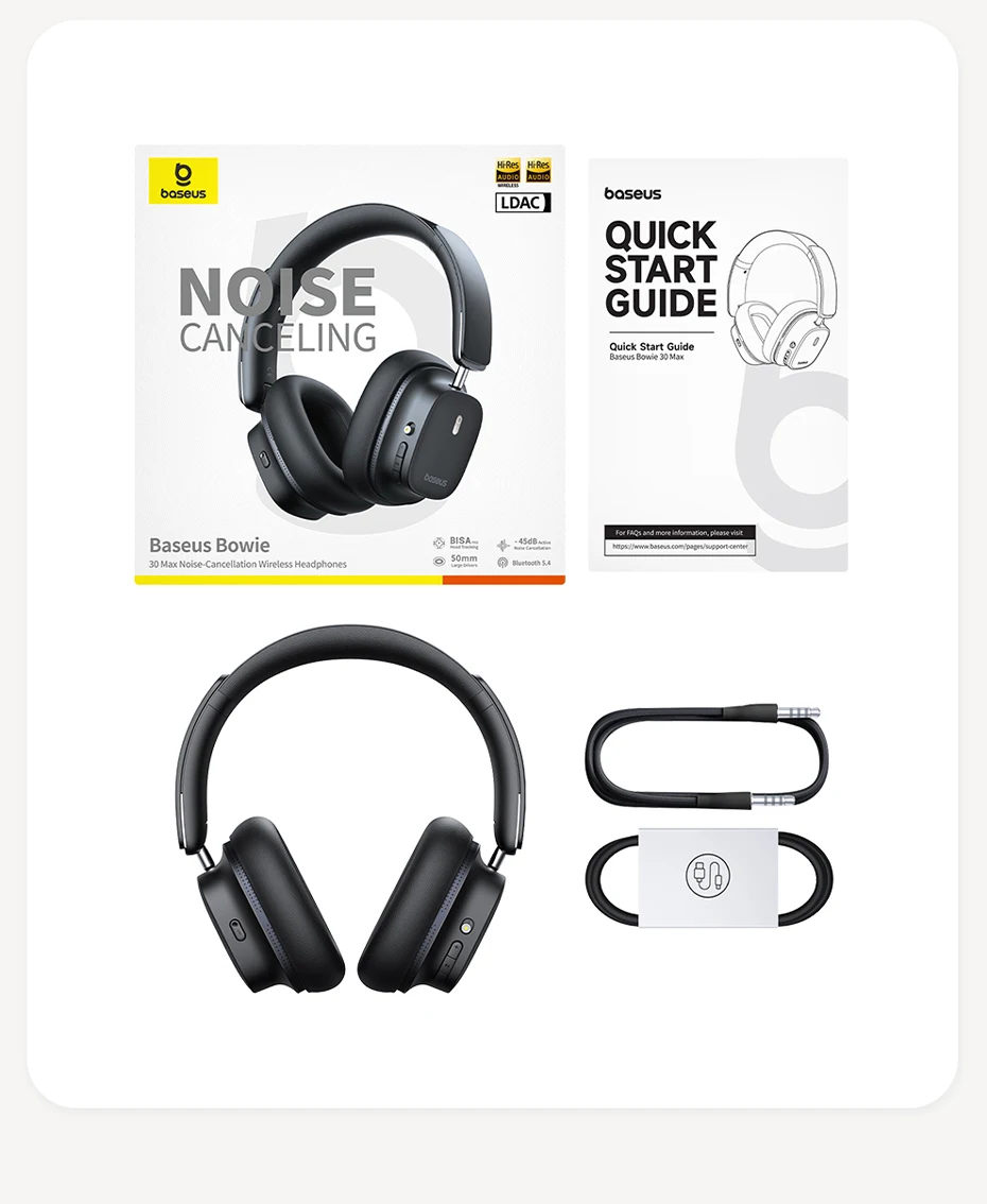 Mi reseña sobre el Baseus Bowie 30 Max que acaba de llegar Nota: No tengo mucha experiencia con auriculares, así que no soy un audiófilo por naturaleza. Sonido: Gama alta y media = de media a buena Graves = excelente Anc=muy bueno El seguimiento de la cabeza es una adición interesante, pero aún necesito ver cómo se siente al ver una película (donde debería destacar más). Nota: considerando que todo está con LDAC habilitado y utilizando la tasa máxima disponible (990 kbps) Diseño y construcción: Construcción bien acabada, pero me faltaba una varilla de metal (está hecha de plástico u otro material). Cojines cómodos y flexibles Un poco pesado Otros puntos: No sé por qué, pero cuando conecto el cable P2 que venía con el dispositivo, el sonido se vuelve demasiado bajo. Veredicto final: Fue una excelente compra; pensé que me arrepentiría porque muchas personas hablan negativamente de ella, pero en general estoy satisfecho. Nota: 9/10