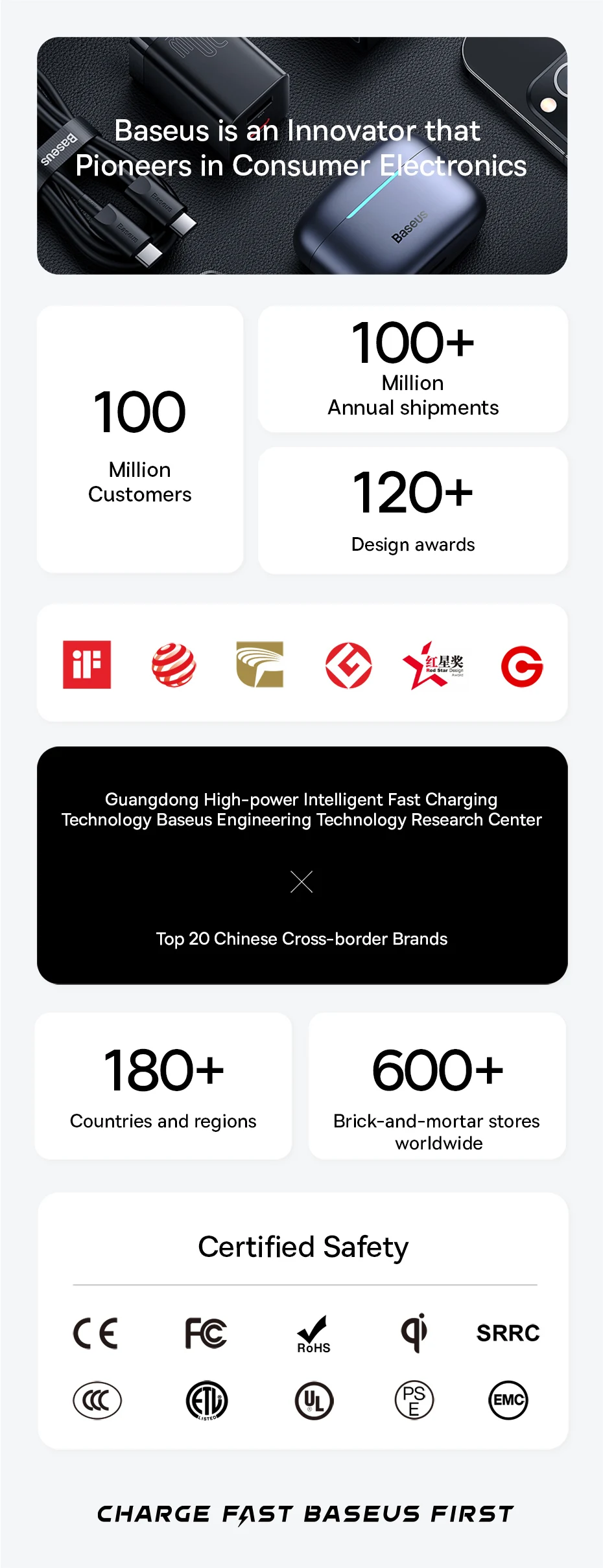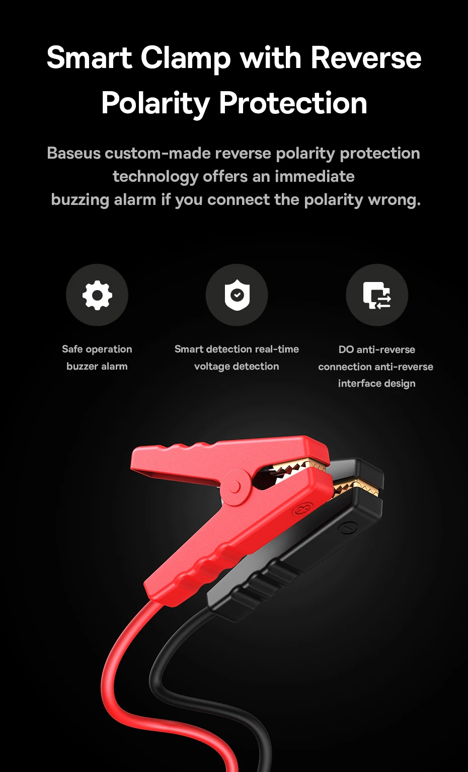 La tecnología de protección de polaridad inversa hecha a medida de Baseus ofrece una alarma de zumbido inmediata si conecta la polaridad incorrecta