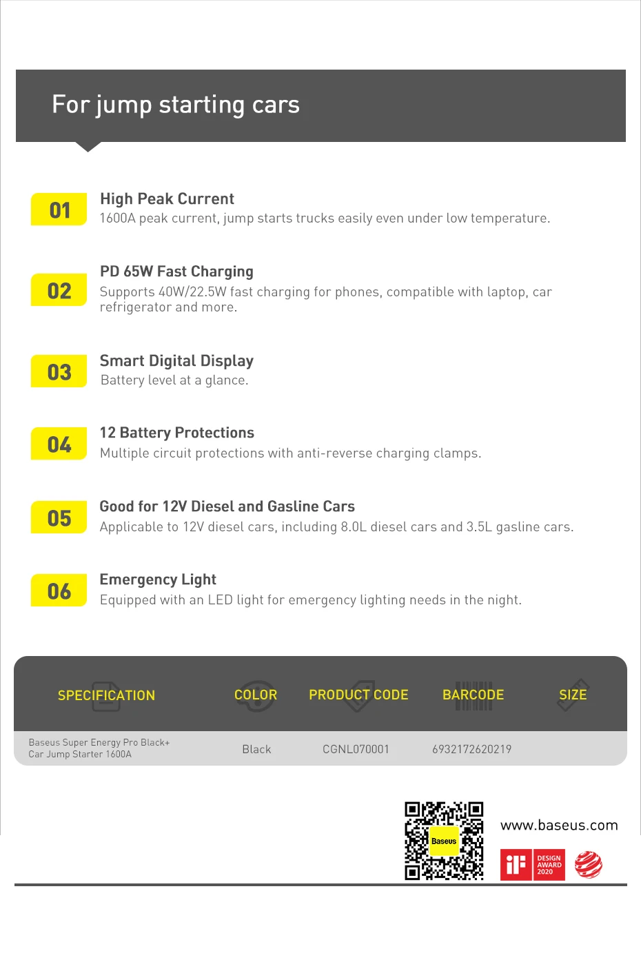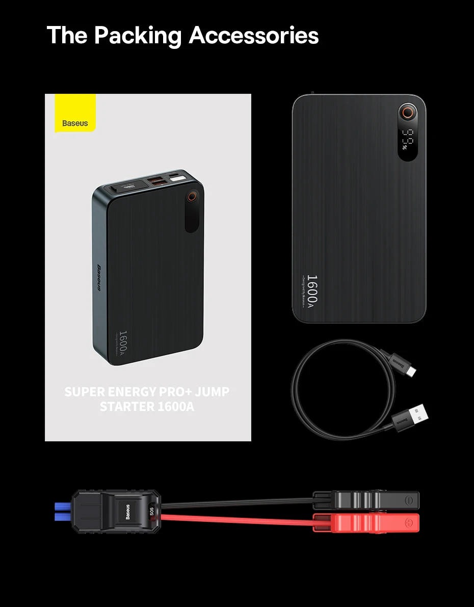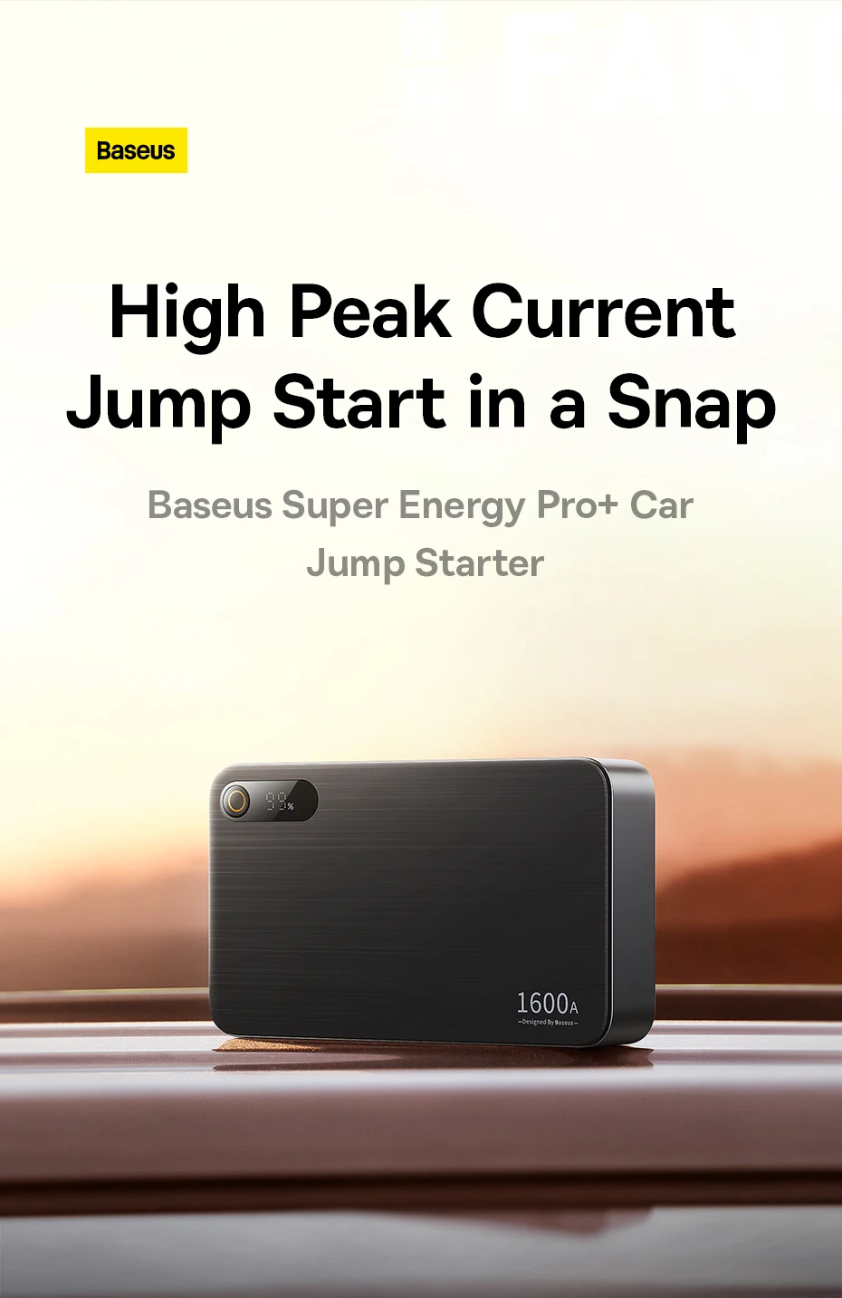 Comprar Baseus-arrancador de batería de coche 1600A, Banco de energía de 16000mAh, 12V, dispositivo de arranque potente, cargador portátil PD, 65W