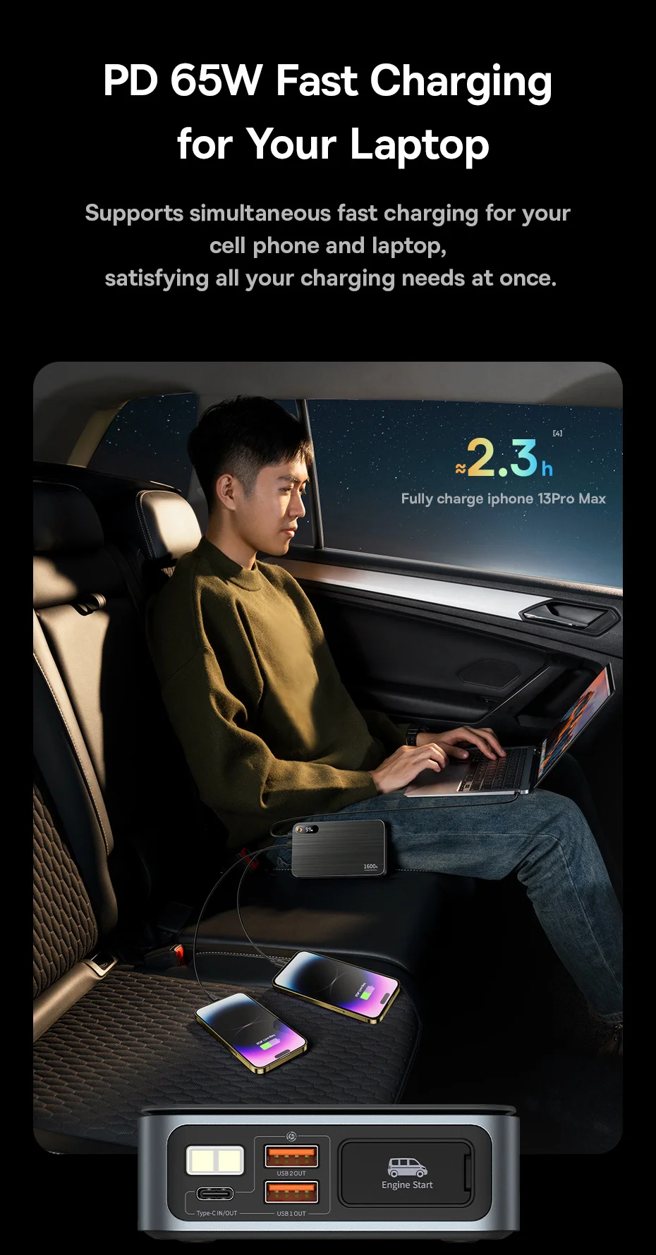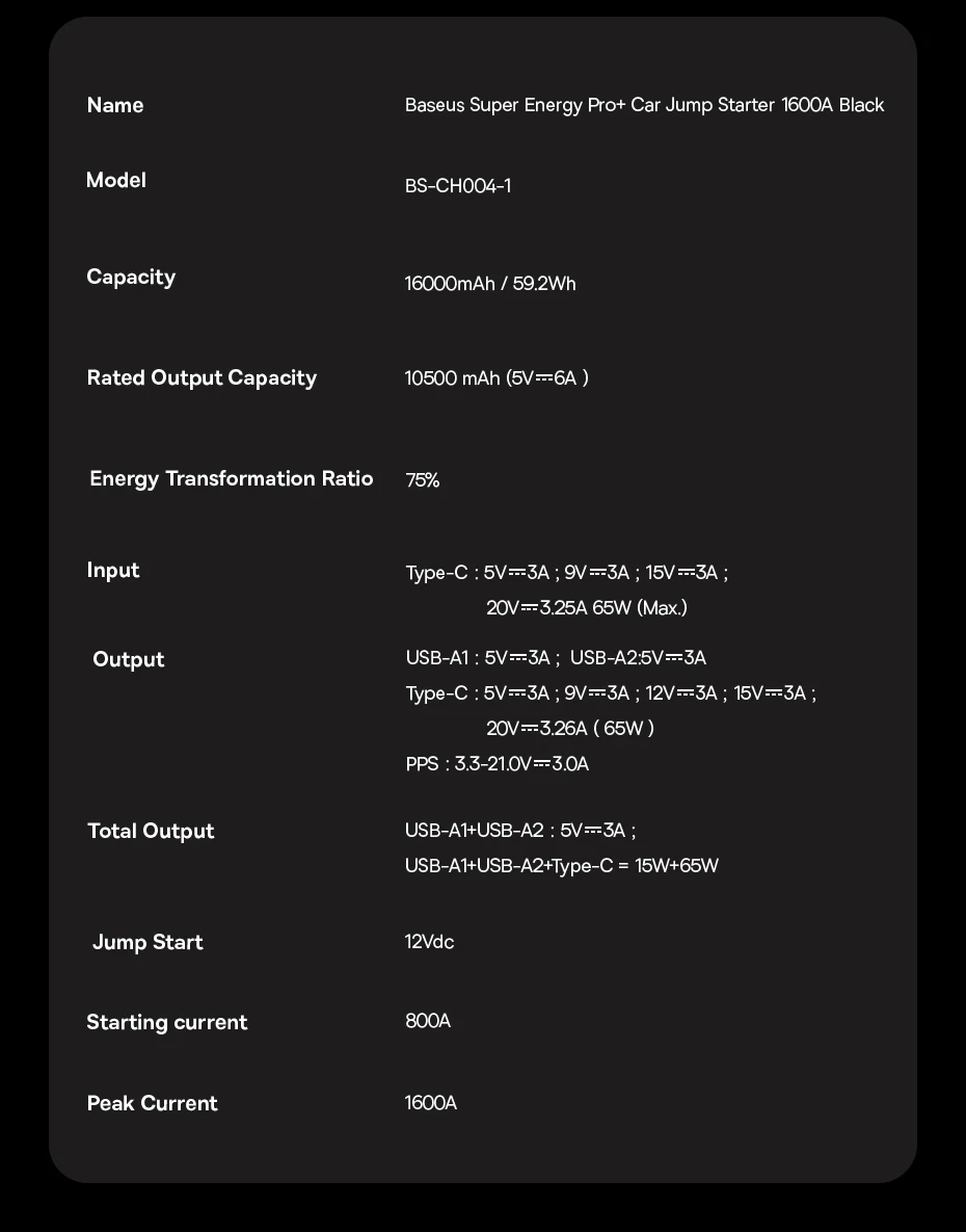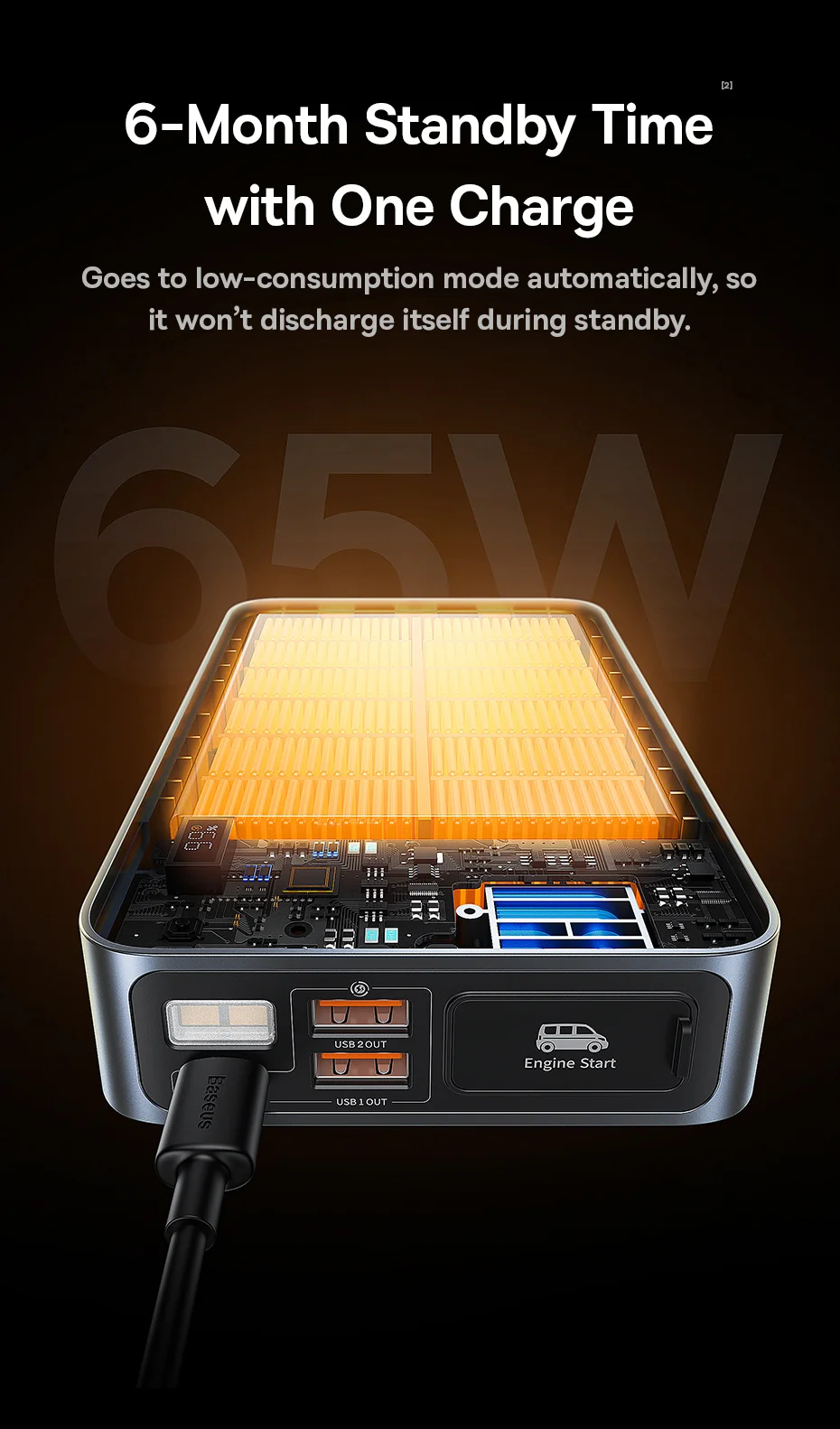 Comprar Baseus-arrancador de batería de coche 1600A, Banco de energía de 16000mAh, 12V, dispositivo de arranque potente, cargador portátil PD, 65W