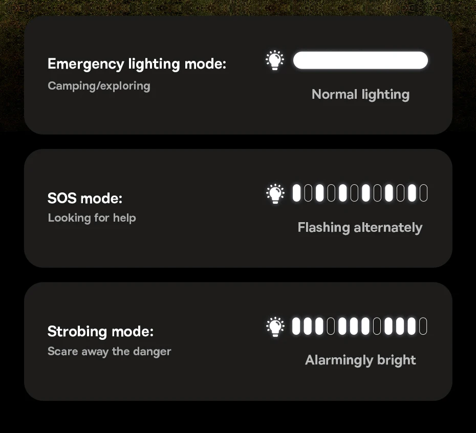 Equipado con una luz de emergencia, que se puede utilizar como señales de advertencia para mantenerse seguro cuando está en medio de la nada.