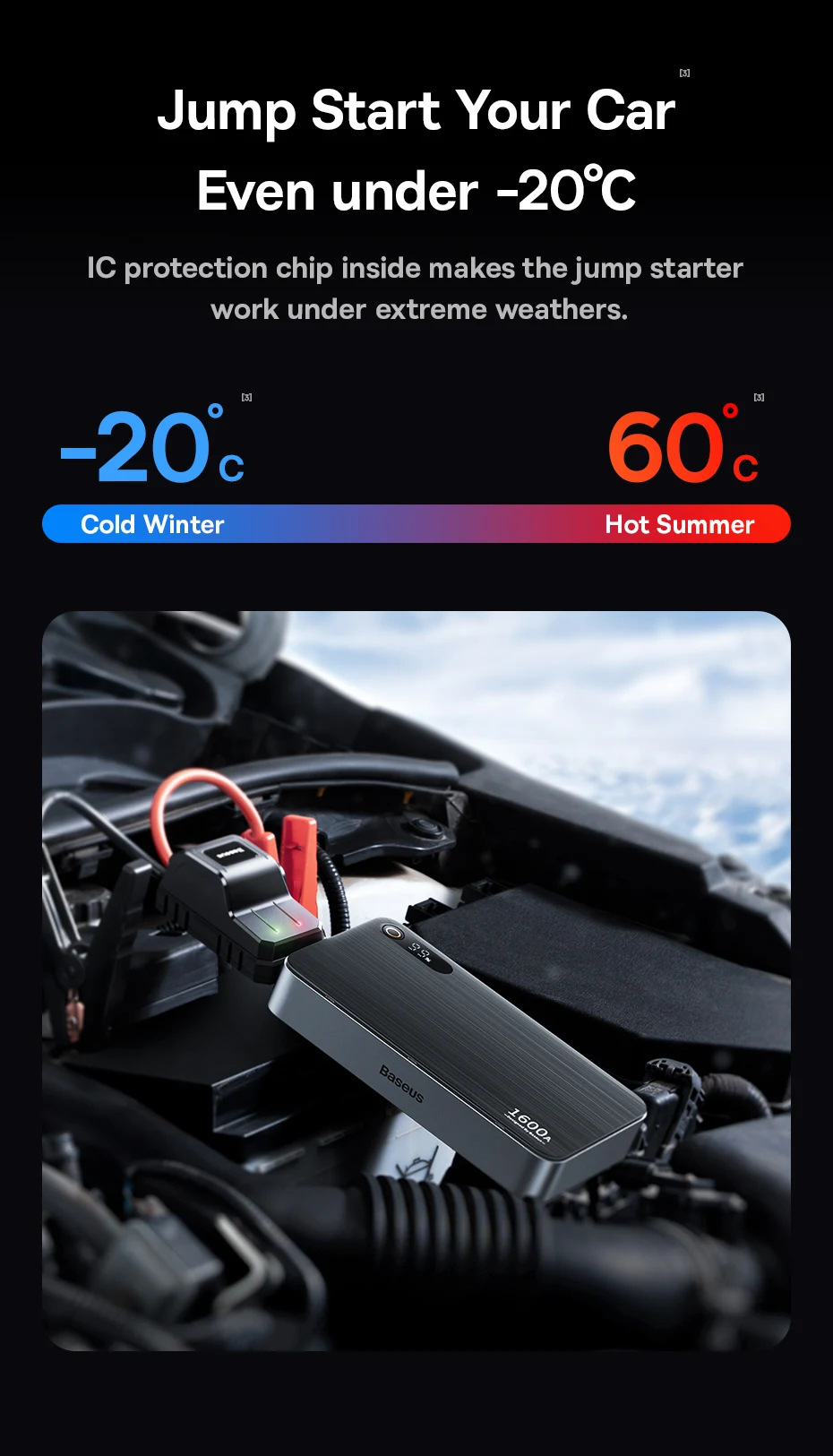 El chip de protección IC en el interior hace que el arrancador funcione en condiciones climáticas extremas.