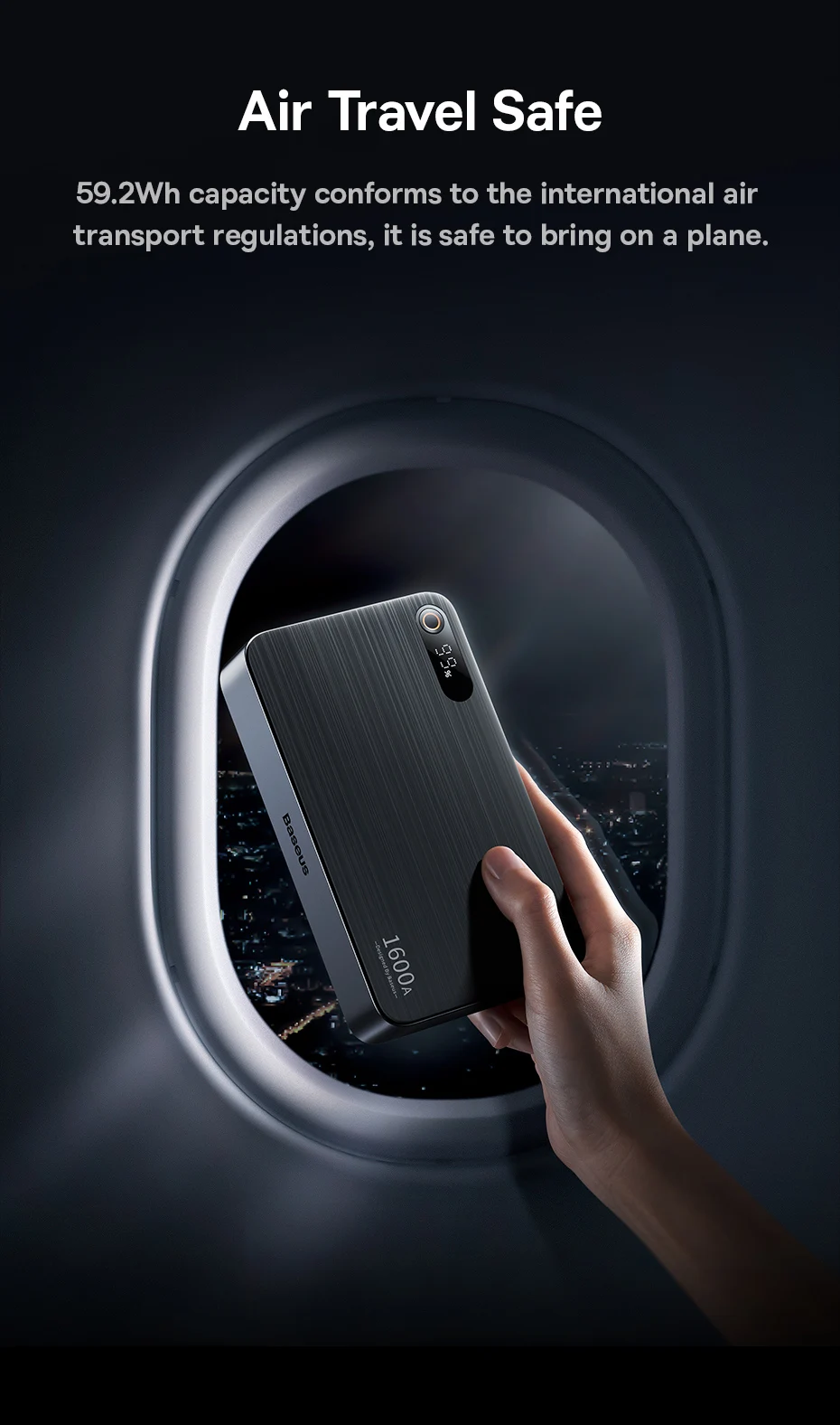 La capacidad de 59,2 Wh cumple con las regulaciones internacionales de transporte aéreo, es seguro llevarlo en un avión.