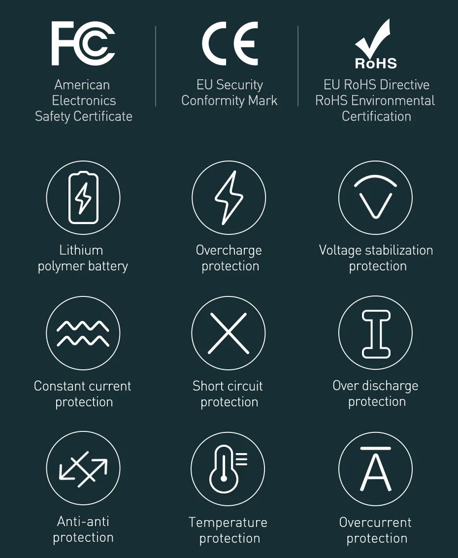 Este producto tiene nueve diseños de protección, que han pasado muchas certificaciones de seguridad internacionales para proporcionar una fuerte garantía para su viaje seguro.