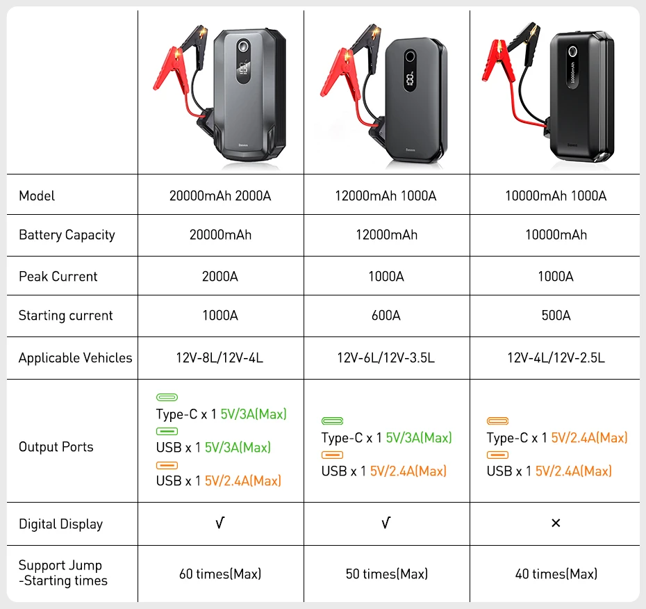 Las abrazaderas de encendido inteligentes con ocho protecciones de seguridad vienen con el producto, que están a la altura de los estándares de prueba para un uso más seguro.