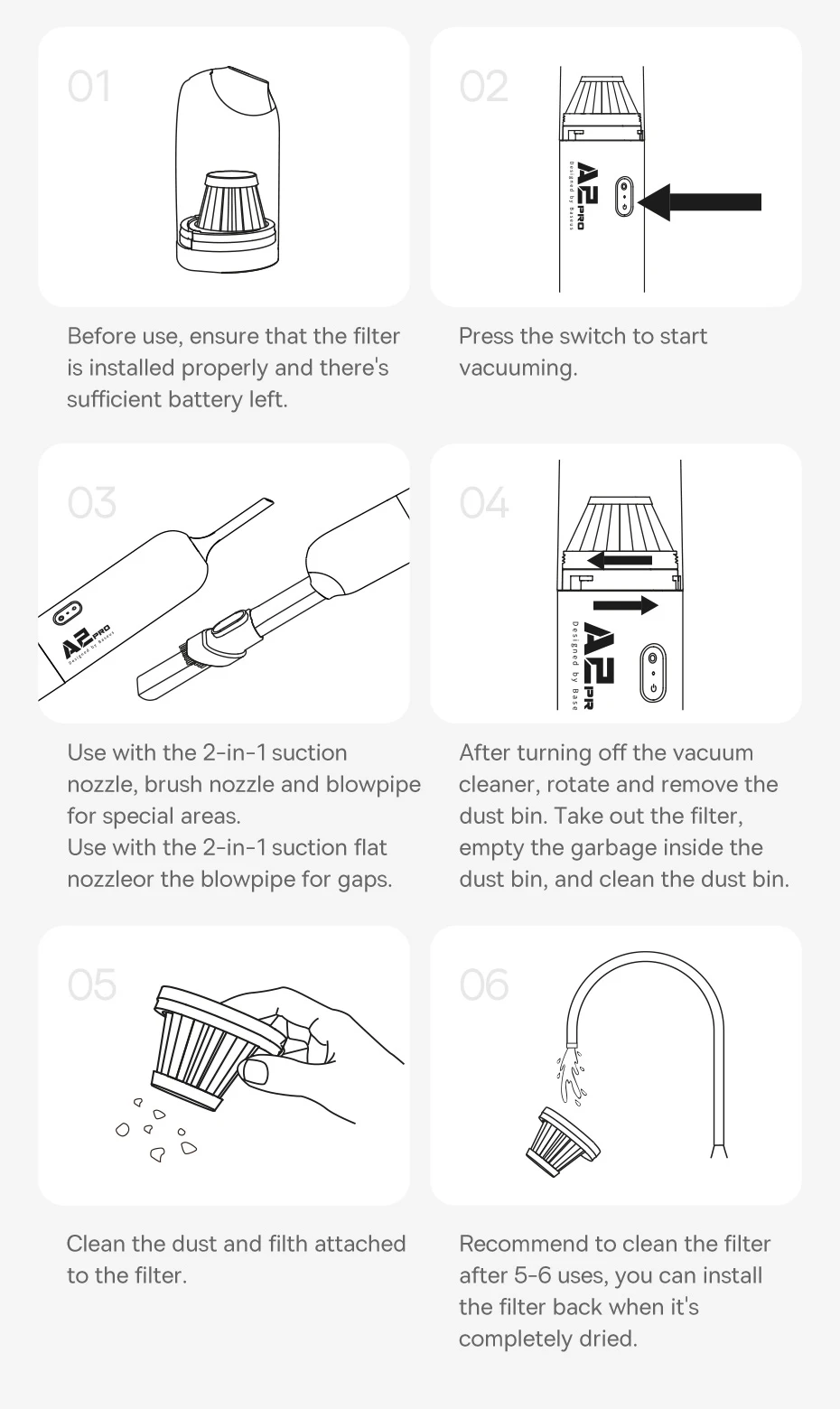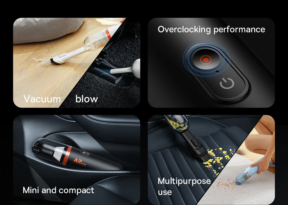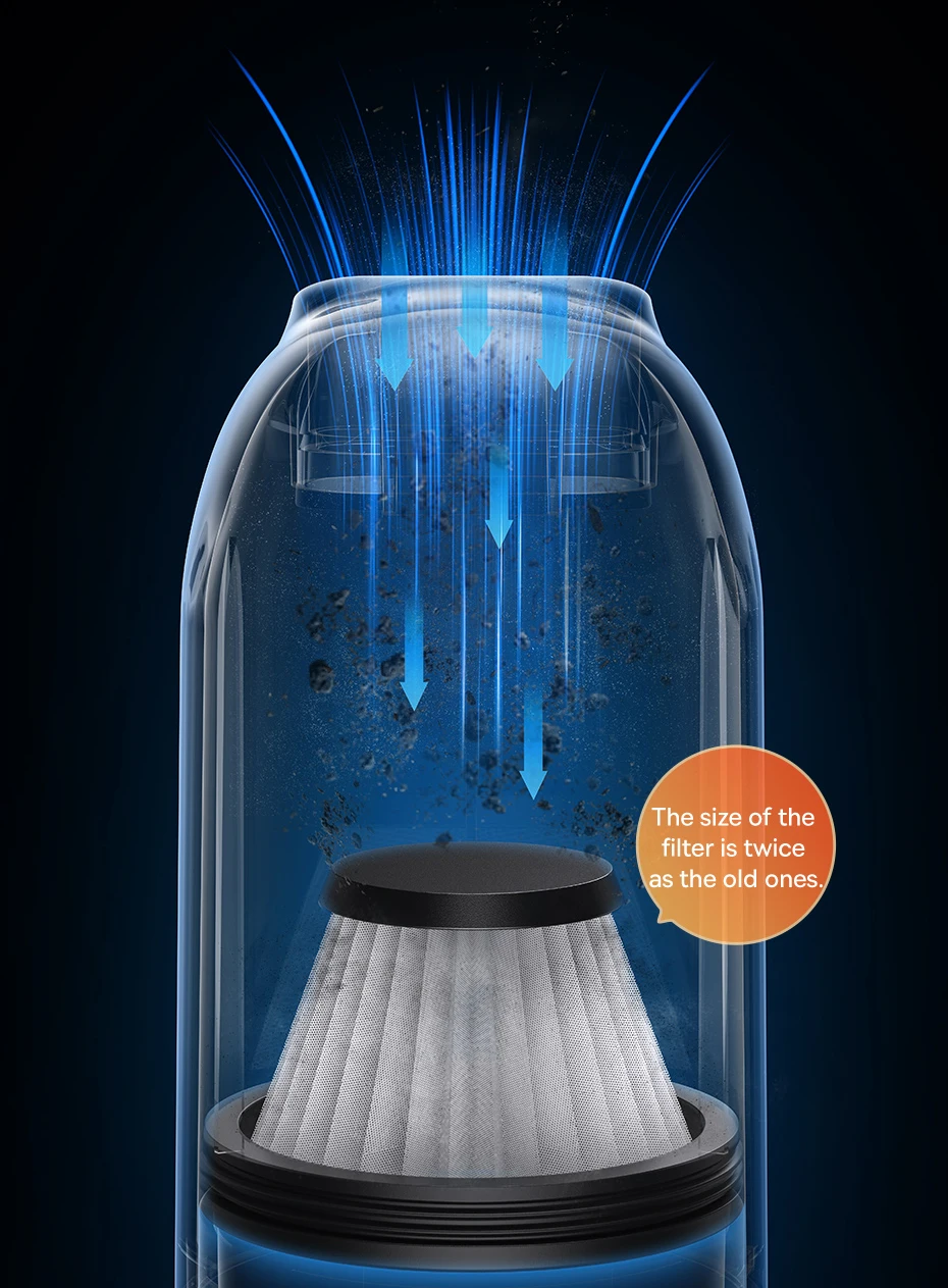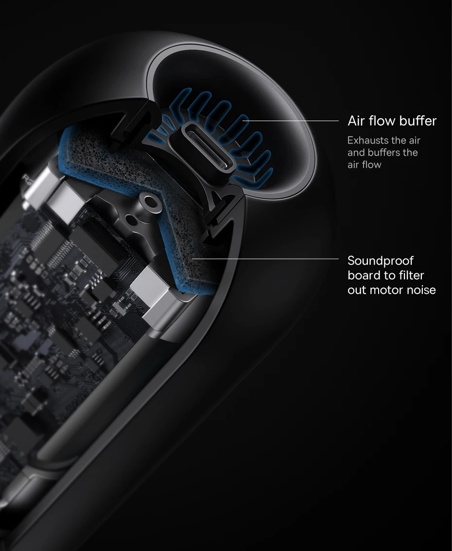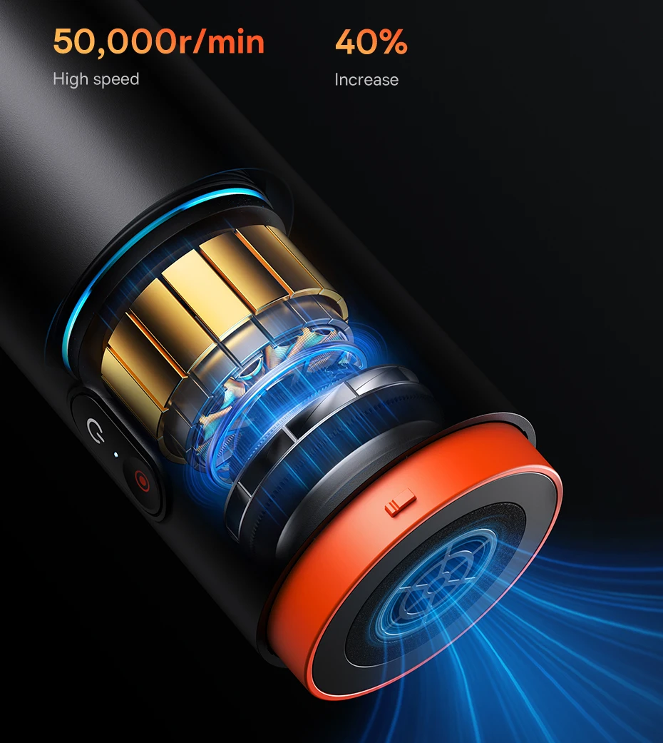 High-speed noiseless motor, linear design for the air vents, less wind power loss, 40% higher suction force than before