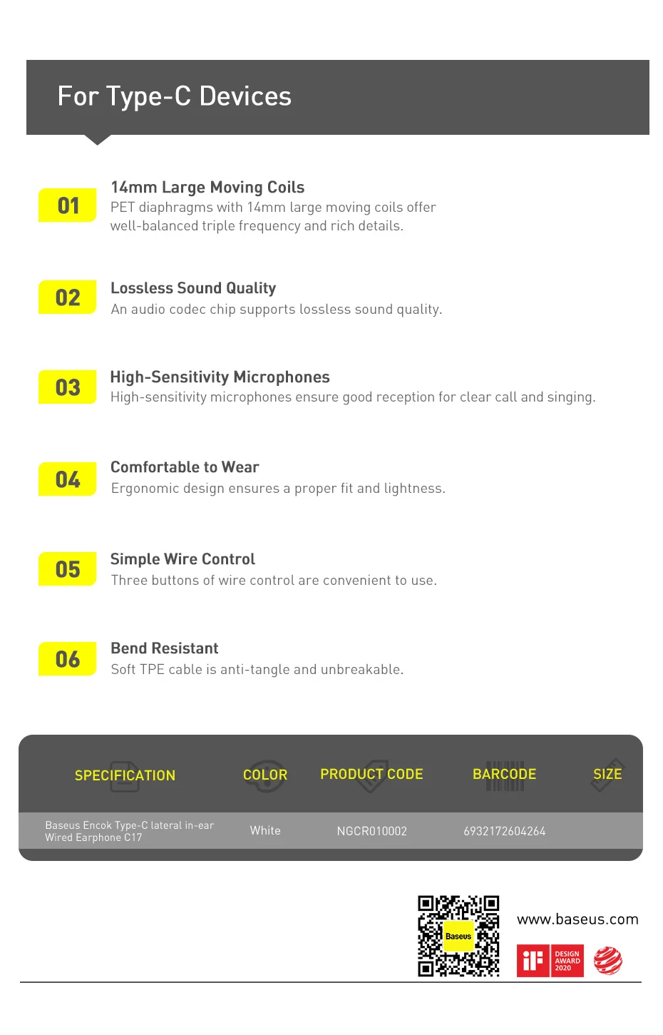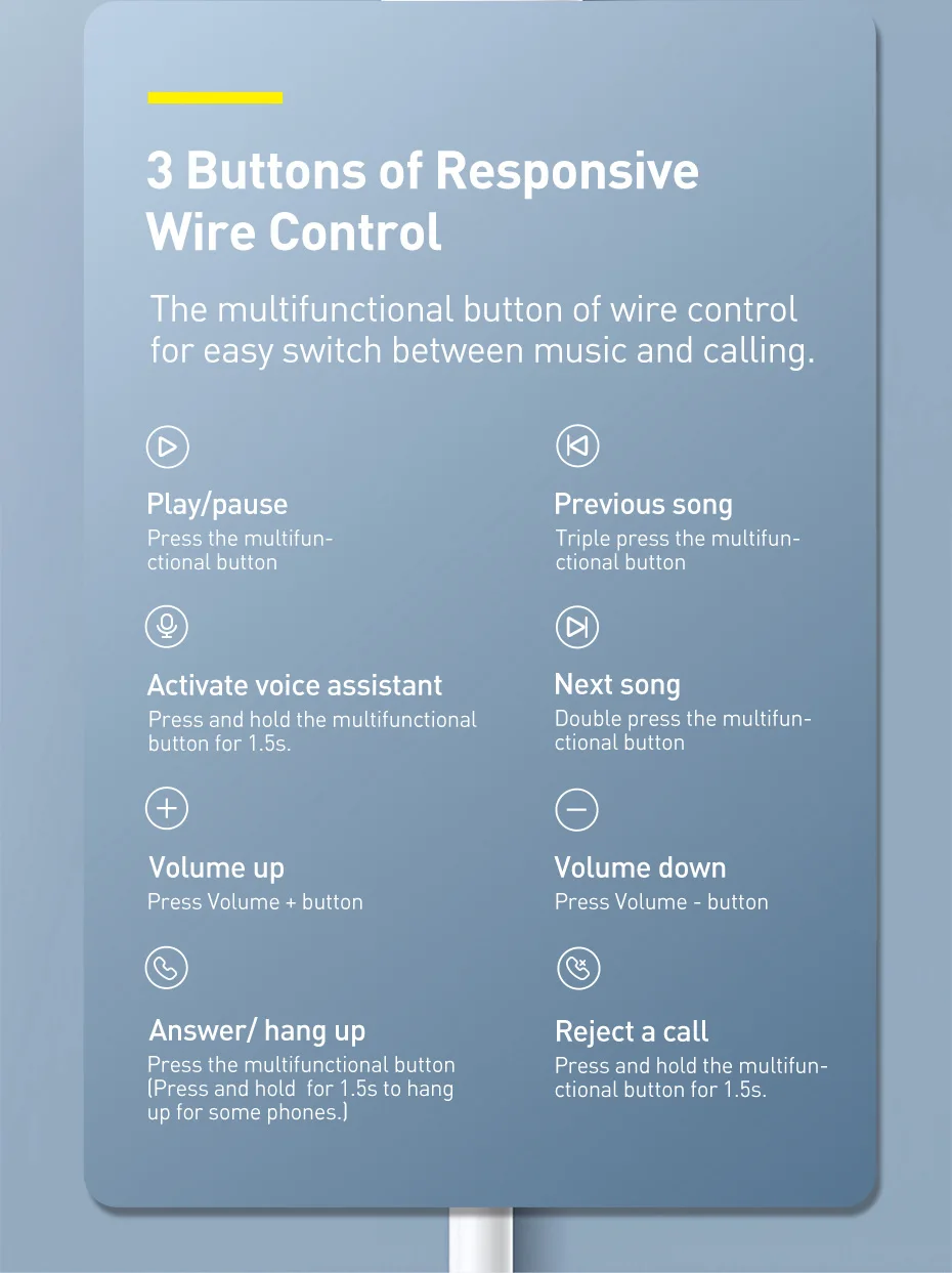 Comprar Baseus-auriculares con cable tipo C, cascos internos con micrófono, Audio, para Mi Redmi Xiaomi, Samsung S21, Huawei P40