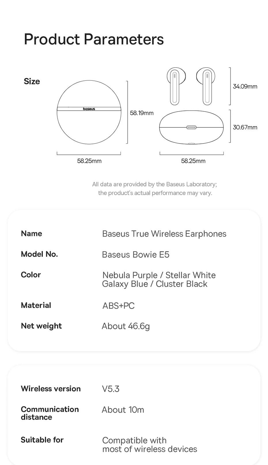 Comprar Baseus-auriculares inalámbricos Bowie E5 TWS, cascos con Bluetooth 5,3, 25H de tiempo de reproducción, 2 micrófonos, reducción de ruido, HD, para llamadas, HIFI