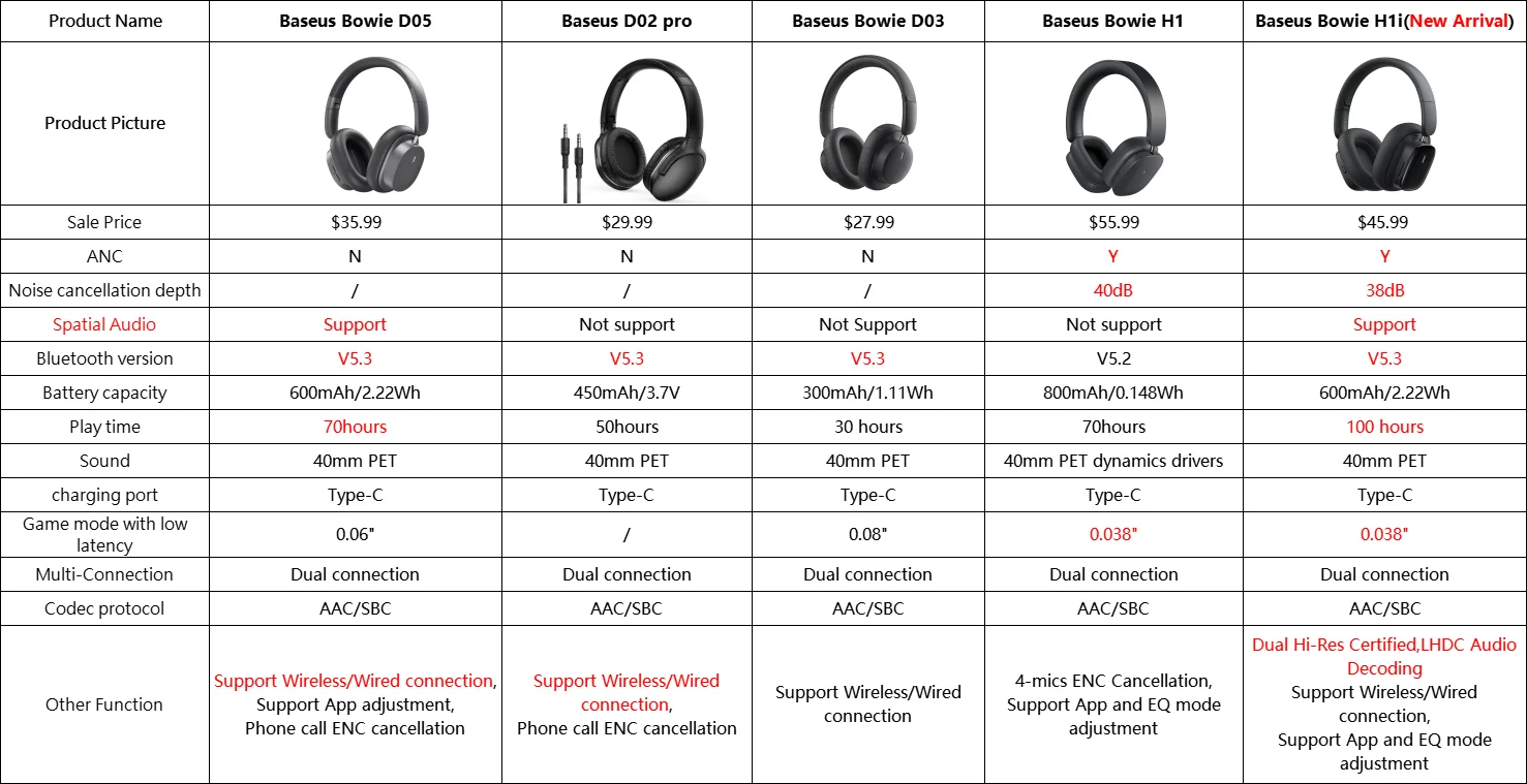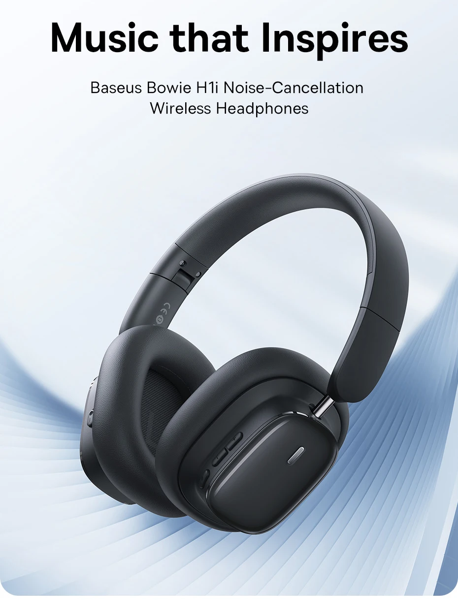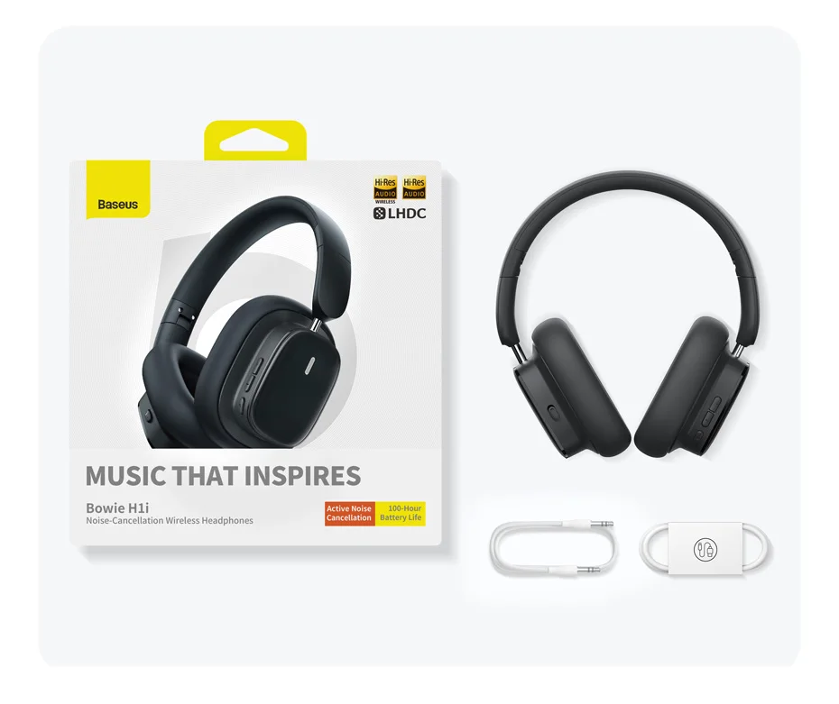 Comprar Baseus-auriculares inalámbricos, cascos por encima de la oreja con Bluetooth 5,3, 38db, ANC, cancelación de ruido, hi-res, 3D, Audio espacial, 100H