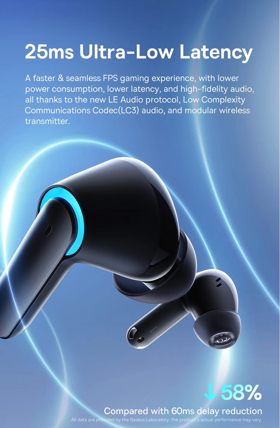 Comprar Baseus-auriculares inalámbricos G10 para videojuegos, cascos con conexión Dual A C, baja latencia, 25ms, Bluetooth 5,3, Audio espacial, TWS