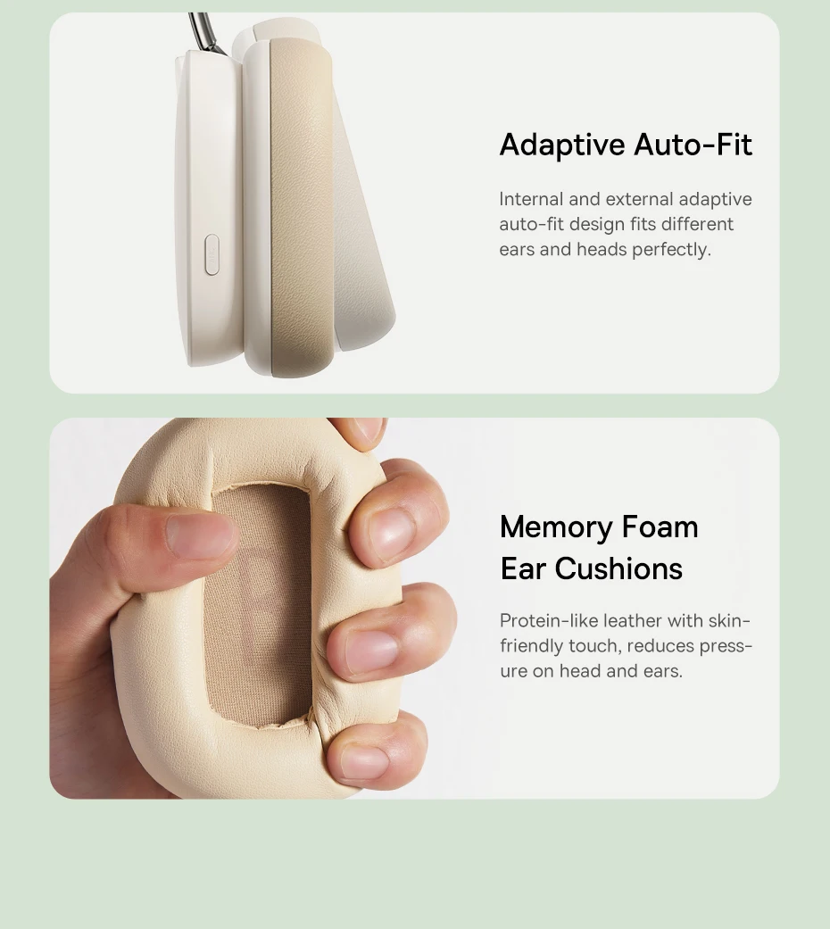 Deslizador de diadema ajustable; Ajuste automático adaptable; Almohadillas de espuma viscoelástica