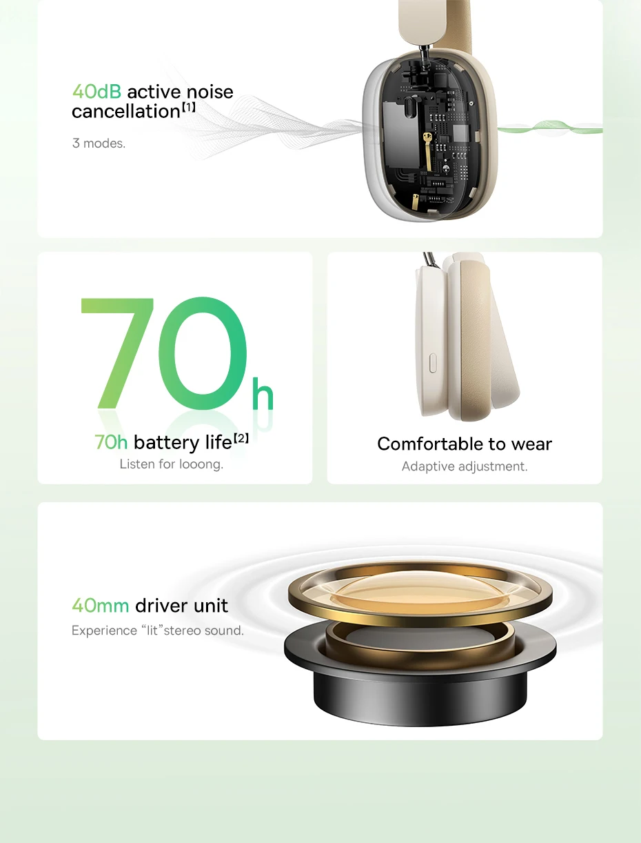 Comprar Baseus-auriculares inalámbricos H1 con Bluetooth 5,2, dispositivo de audio con cancelación activa de ruido, 40dB, ANC, para iPhone y Xiaomi